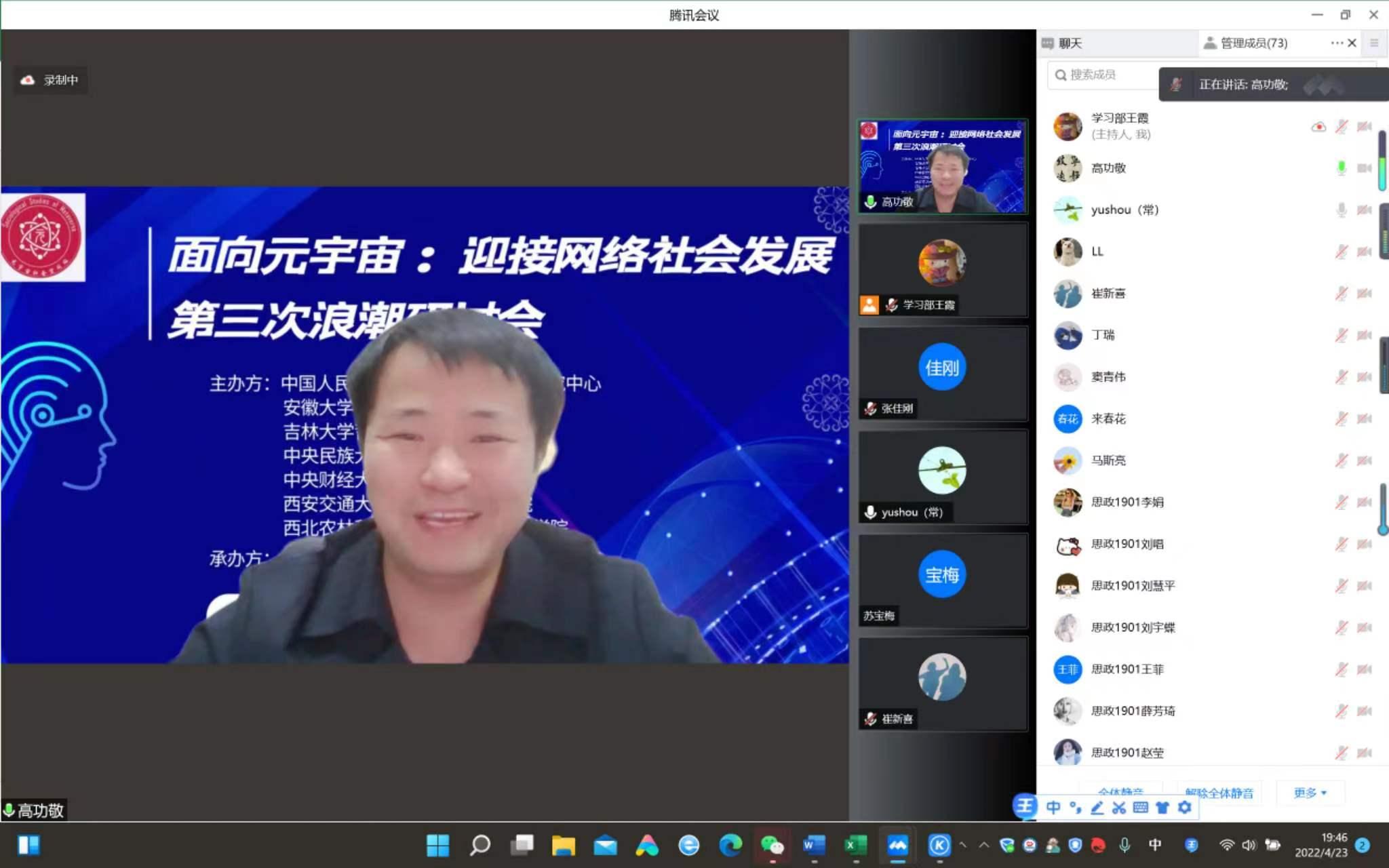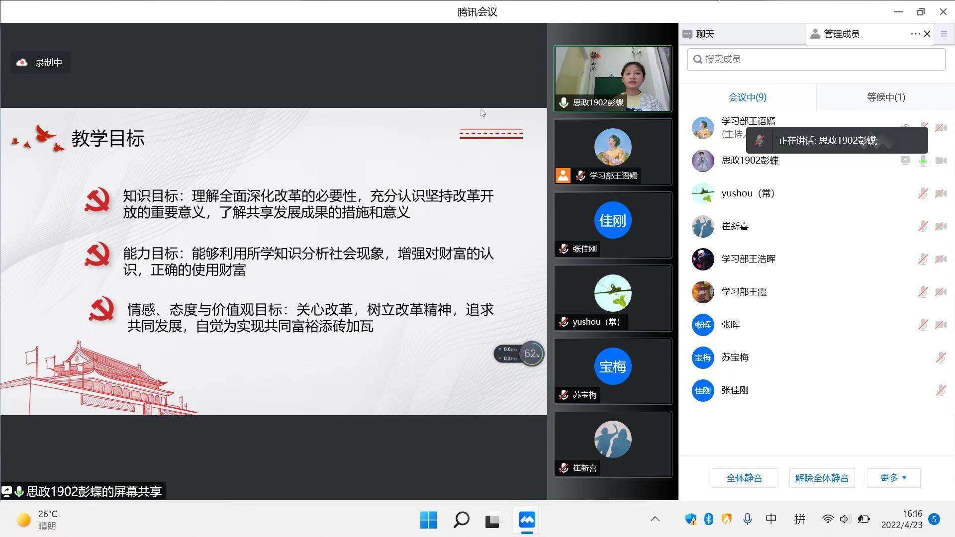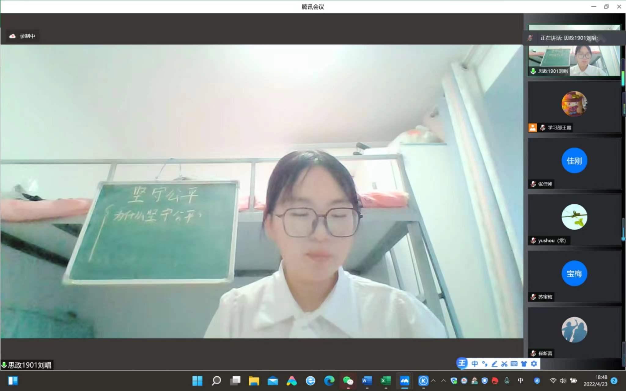 “一支部一品牌,一专业一赛事”的育人理念下的卓越赛事之一,也是加强专业建设和推动师范专业认证工作的重要工作。最后,高院长对为本次大赛认真准备的同学们表示感谢,对专家和评委老师们的辛勤付出表示感谢,祝贺本次决赛取得圆满成功,也希望同学们在疫情中能够同舟共济、顽强拼搏,争取在省赛中取得更加优异成绩。