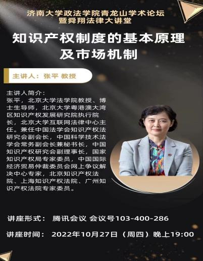 教授、博士生导师张平教授做题为《知识产权制度的基本原理及市场机制》的学术报告。讲座由棋牌游戏