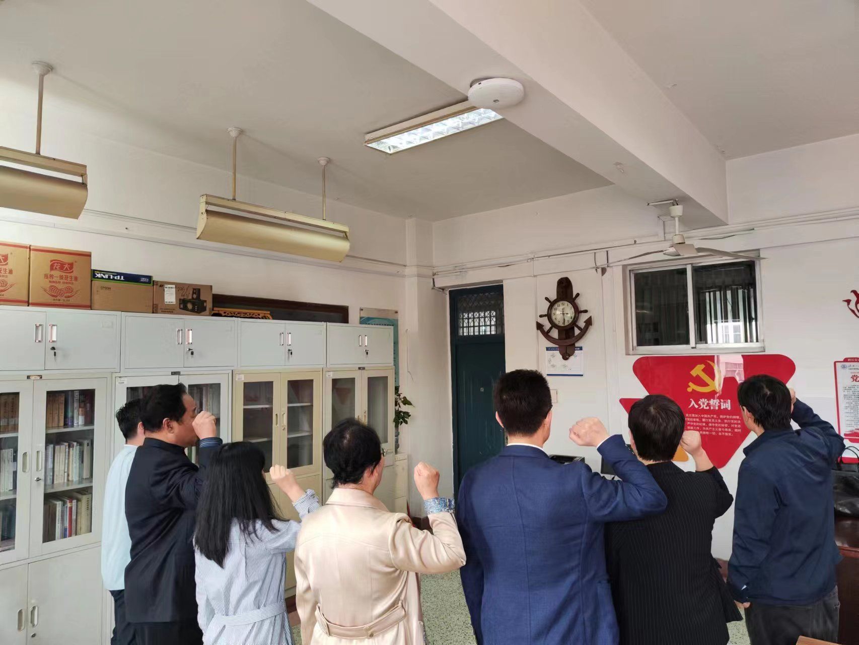 在4教法学系党员活动室,三位党员同志发表了“政治生日”感言,带领全体党员重温了入党誓词,“我志愿加入中国共产党,拥护党的纲领,遵守党的章程……”声音整齐洪亮,激发了党员们的光荣感和自豪感,引导党员不忘入党初心,始终昂扬向上、奋进向前。