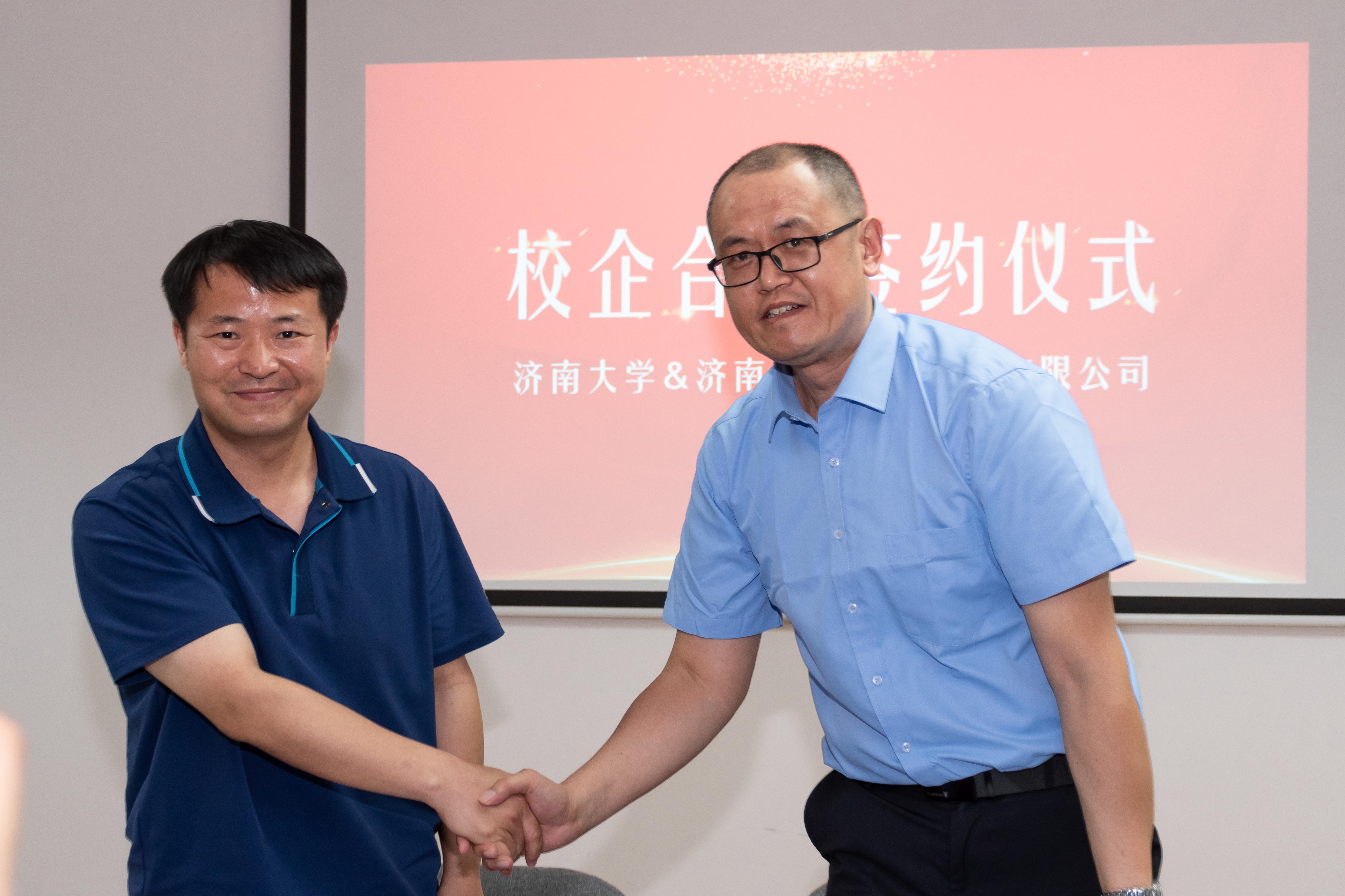 党委书记徐庆国、院长高功敬与企业负责人共同签订了合作协议书、济南大学教育发展基金会捐赠协议、就业实习基地协议、校企合作共建专业战略合作协议、社会实践基地协议、青年就业创业见习基地协议等合作协议。随后,学校学工部部长刘芝,教务处副处长、师范教育管理办公室主任张婷,济南大学合作发展处副处长景丽萍,济南大学团委副书记纪祥分别与合作企业负责人为“济南大学就业实习基地”、“济南大学本科实践教学基地”、“济南大学社会实践基地”、“济南大学青年就业创业见习基地”等揭牌。