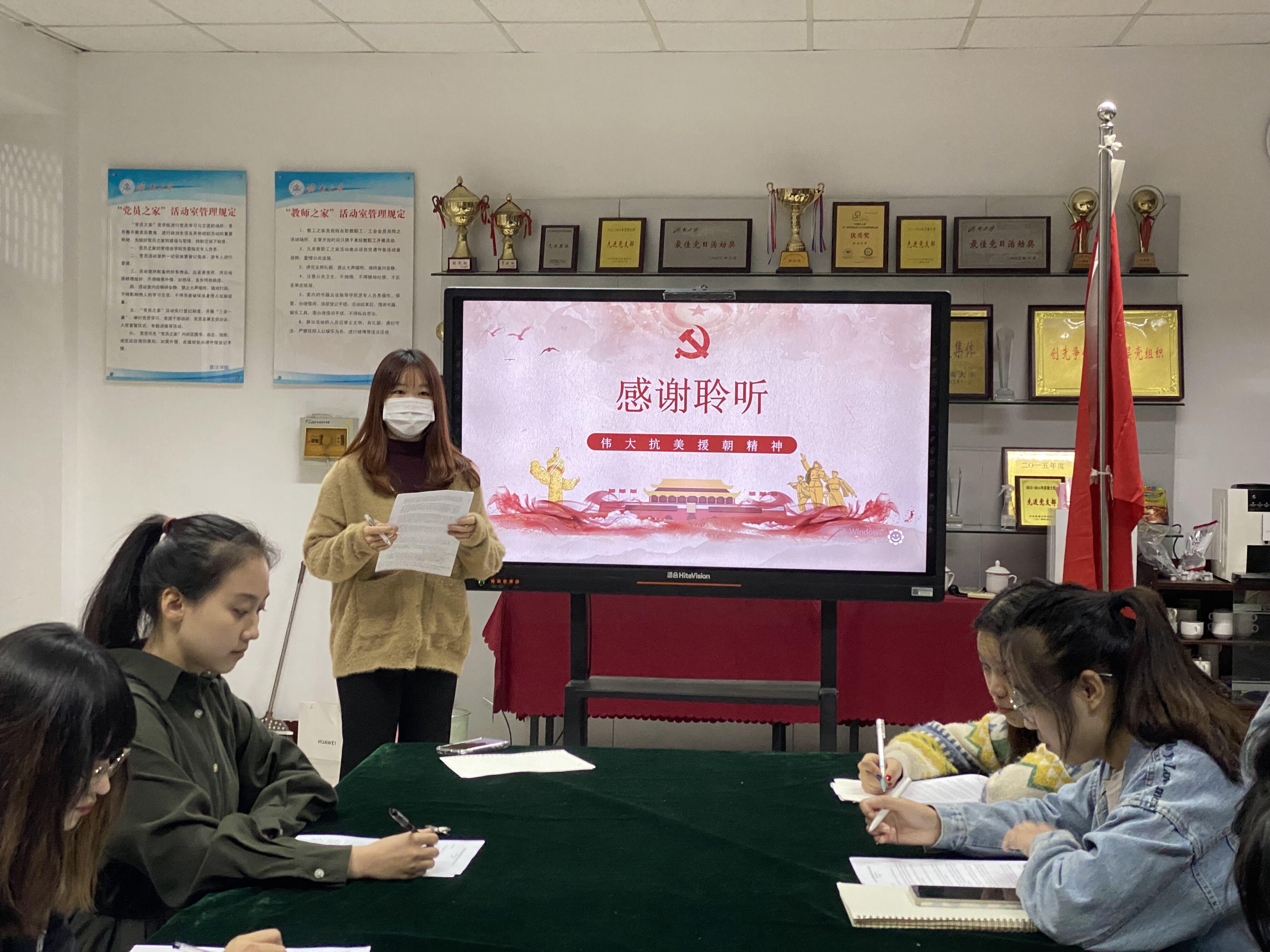 学生会开展“伟大抗美援朝精神”主题学习会,第二十一届学生会部长团成员参加会议。