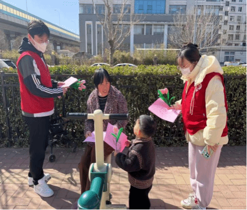 同日,十六里河街道社工站联合济南大学社会工作专业部分同学在十六里河街道所属社区广场开展了主题为“汇聚社工力量,服务美好生活”的国际社工日宣传活动。在此次活动中,社会工作者和济南大学社会工作专业同学通过分发社工宣传单页等方式向当地居民介绍社会工作的相关知识。当居民不理解时,同学们便会不厌其烦地读给他们听并进一步讲解;此外,社工们还会向居民介绍社工站的具体服务内容,以此加深居民对社会工作以及社工站的认识。