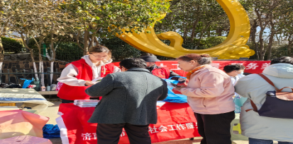 社会工作专业2023级本科生分组行动,参与到市中区各社工站站点的国际社工日宣传活动中。