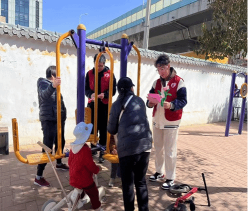 社会工作专业学生同七里山社工站社工通过发放宣传单页,介绍了七里山街道社工站服务内容,有些老年人年纪大了看不清,就读给老人们听。学生们还通过折页上的图片,向居民展示社工在辖区开展的各类活动并积极的鼓励居民加入社工站的志愿服务队共同参与社区治理,进一步加深了居民对社工及社工站的认识程度。现场解答居民们对于社工的疑惑,讲解社工站的定位、服务内容,科普社工与志愿者和社区工作者的区别,让更多的人了解社工、看到社工,扩大社工的影响力和认知度。