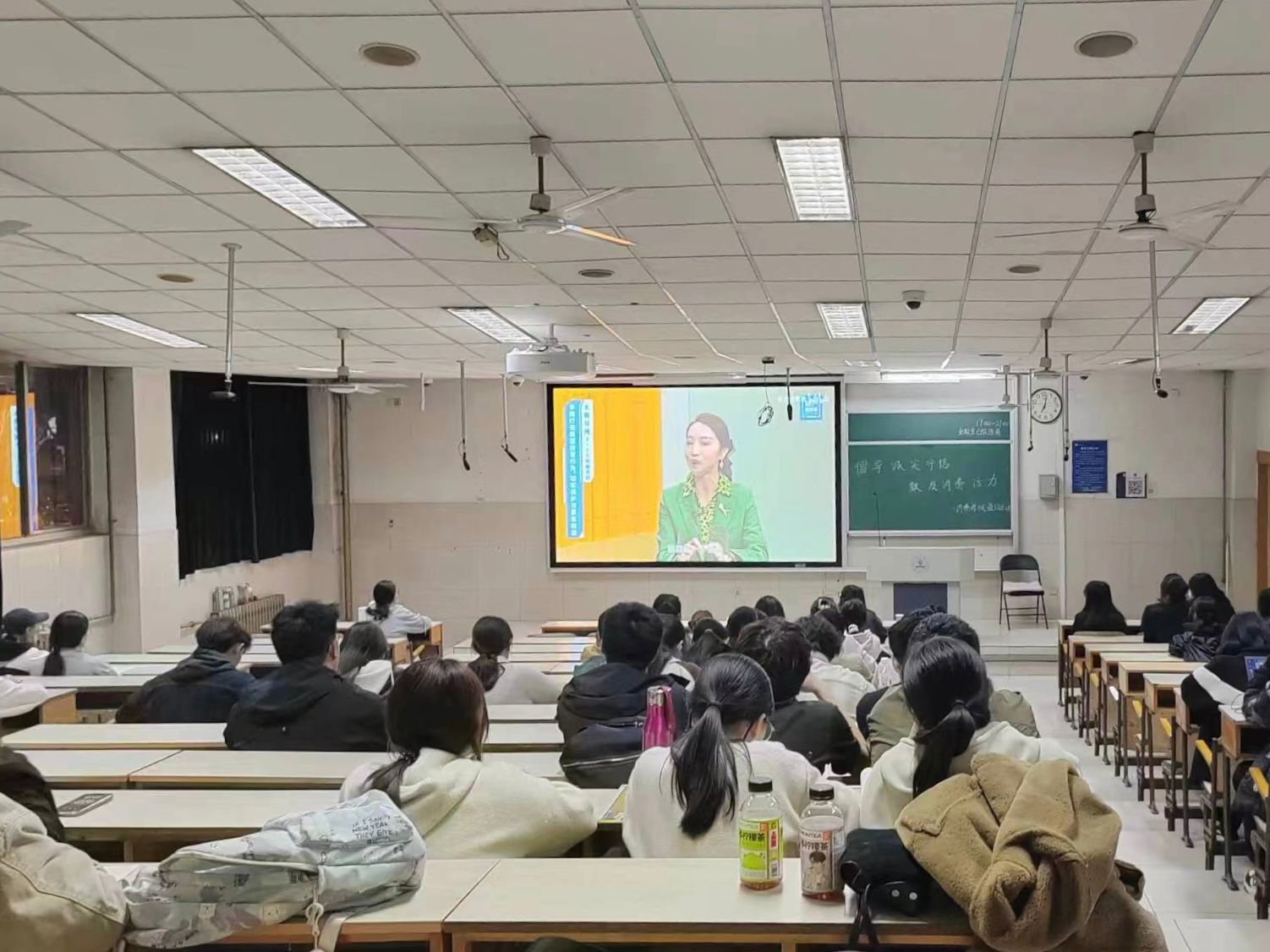 活动中,工作人员在教室播放科普宣传视频,并面向全体棋牌游戏