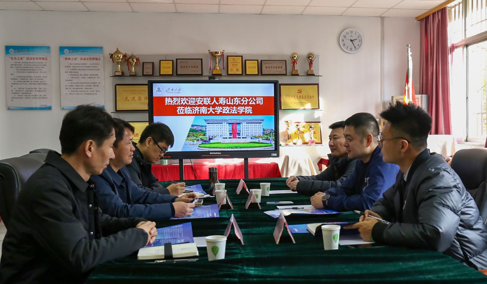 的热情接待表示感谢,介绍了中德安联人寿保险有限公司和山东分公司的发展情况,并表示公司发展亟需大量人才,表达了进一步合作的意向。随后,双方围绕校企合作进行了深入探讨,初步达成合作意向,并表示未来将持续推进合作进一步走深走实。