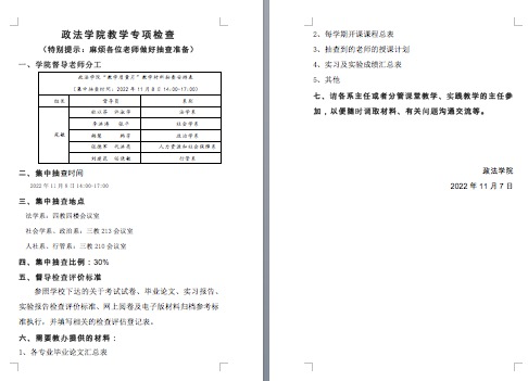 五个专业的考试试卷、毕业论文、实习报告、实验报告的归档情况、材料规范程度等事项进行抽查。集中抽查比例确定为学生人数的30%。最后,教学质量专项检查小组针对检查情况进行总结,形成检查报告,及时发现问题,并提出相应的整改意见。