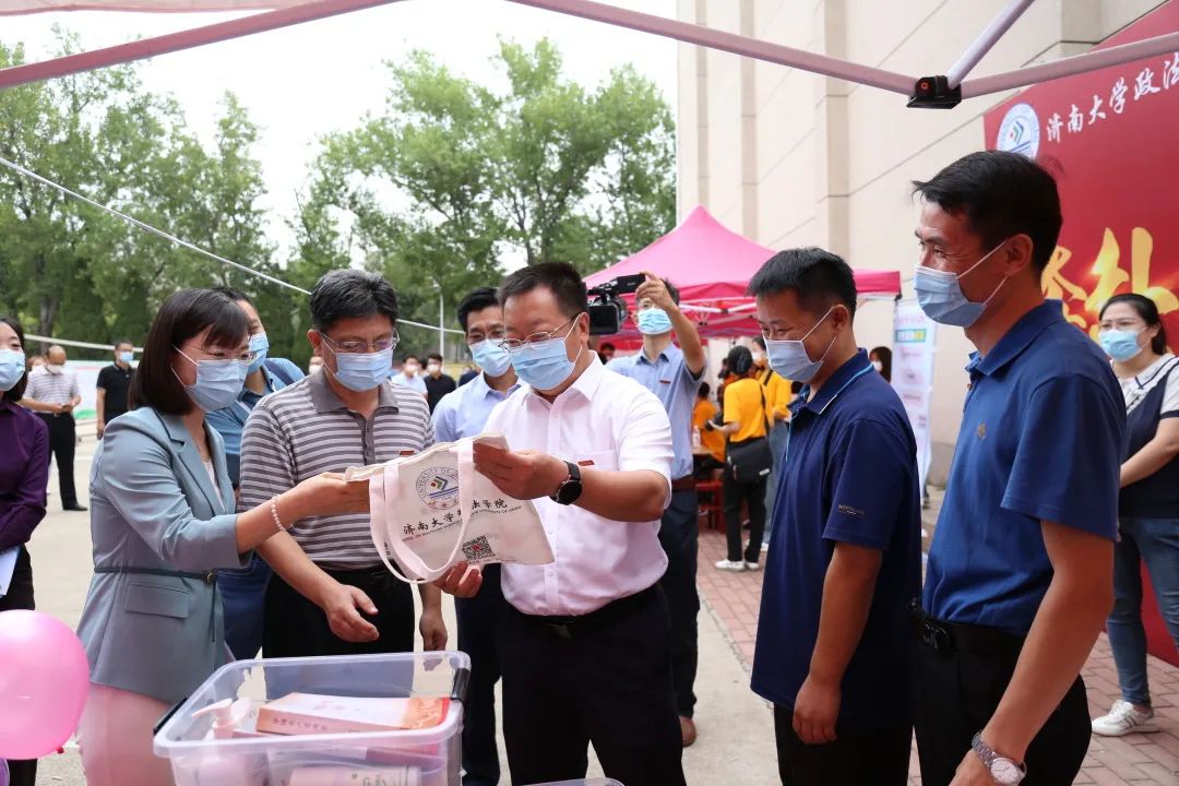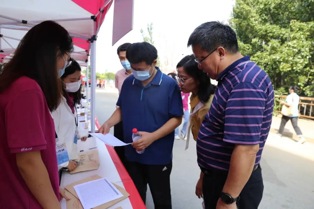 精心为报道准备的物资设备、导引资料,详细了解迎新工作流程和新生报到情况,并与志愿者以及2022级新同学亲切交谈、合影留念,为他们送上诚挚问候。