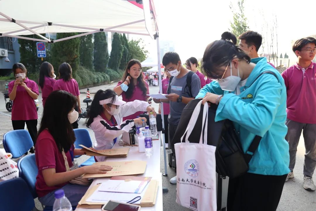 为做好疫情防护,减少人员拥挤接触,新生响应独立自主完成报道的号召,自主完成入学报道第一课。17号已报道的省外萌新响应倡议,积极到各报道点与志愿者一起做好服务。在有秩序的互帮互助中,政法小萌新们完成了自主报道。