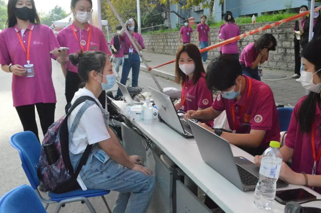 组建了志愿者团队,负责省外新生核酸检测、新生报道、引导并疏通人群等工作以保障学生安全。