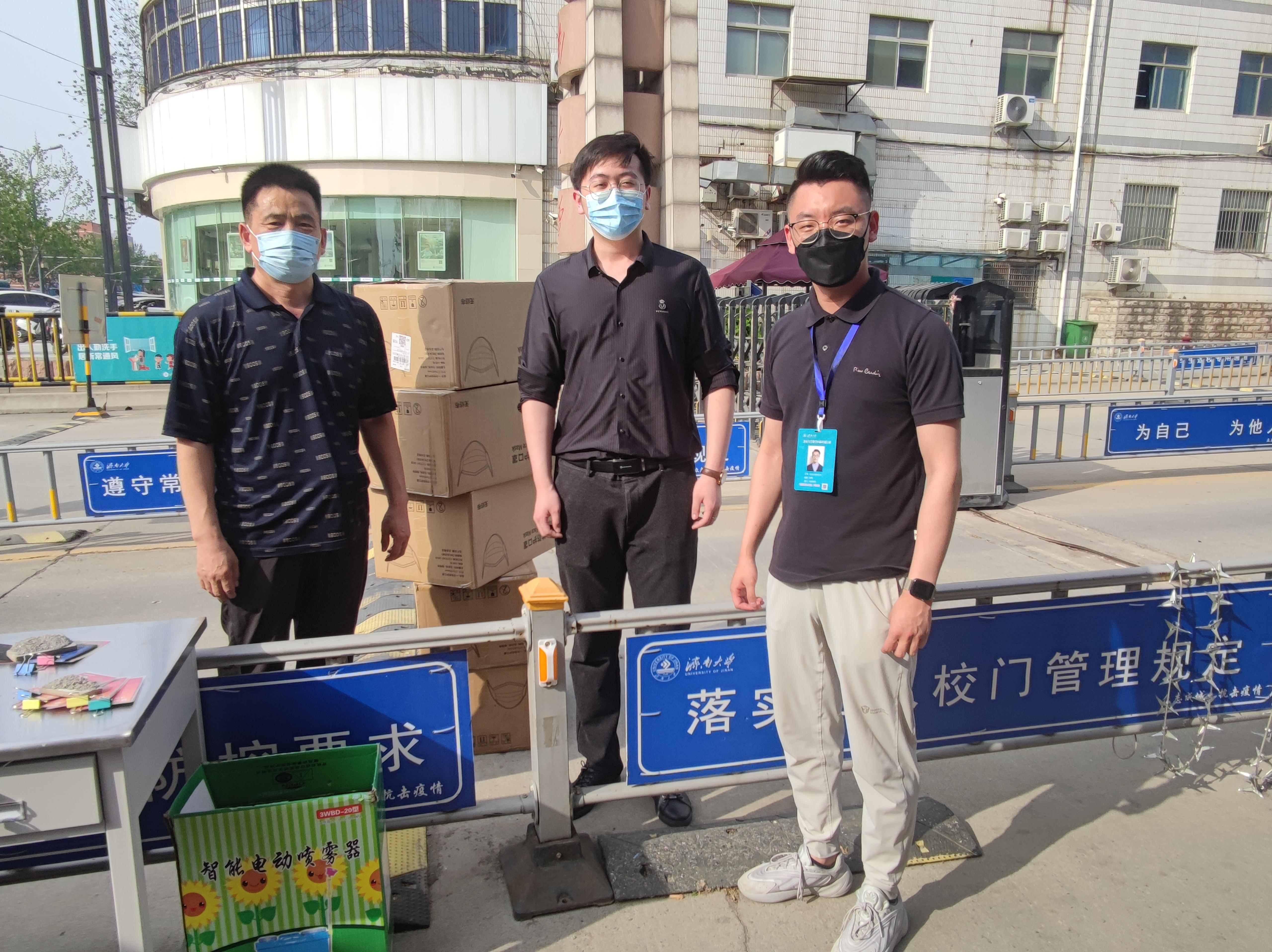 捐赠口罩一万只。因学校疫情防控要求,双方在主校区西门完成简单交接。