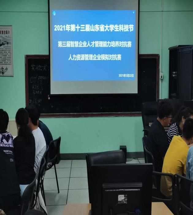 公管2020级、社保2019级部分同学在社会保障实验室参加了由山东省教育厅、山东省人力资源和社会保障厅、共青团山东省委员会等单位联合主办的2021年第十三届山东省大学生科技节第三届智慧企业人才管理能力培养(人力资源)对抗赛初赛(线上)。本次比赛三月底启动,全省共有多所高校的数百支队伍参加。我校由人力资源与社会保障系的刘艳丽、辛瑞萍老师组织指导,社保18级王吉龙等同学进行专门培训,传授经验,历经了一个多月的训练准备,今天初赛共有10支队伍参加,与其他院校以线上小组的方式共同进行。各参赛队伍通过精创人力资源管理职能仿真与对抗平台开展线上对抗,最终获胜的队伍将入围全省总决赛。