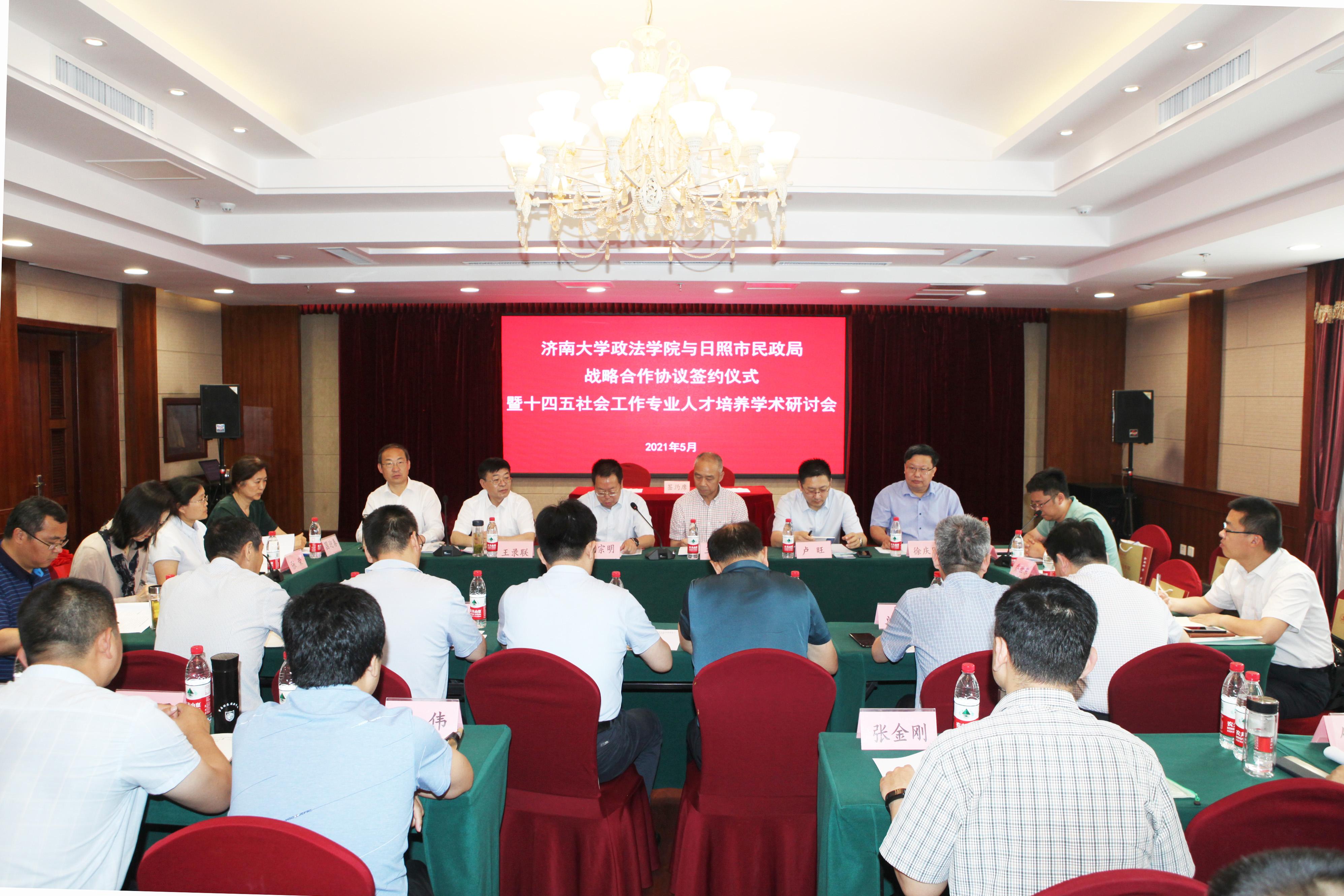 与日照市民政局战略合作协议签约仪式暨十四五社会工作专业人才培养学术研讨会在济南举行。学校副校长刘宗明,山东省民政厅慈善事业促进和社会工作处三级调研员王建武,日照市民政局党组书记、局长王录联,日照市民政局党组成员、副局长丁志强,日照市财政局、各县(区)民政局、社区发展服务中心负责同志和棋牌游戏