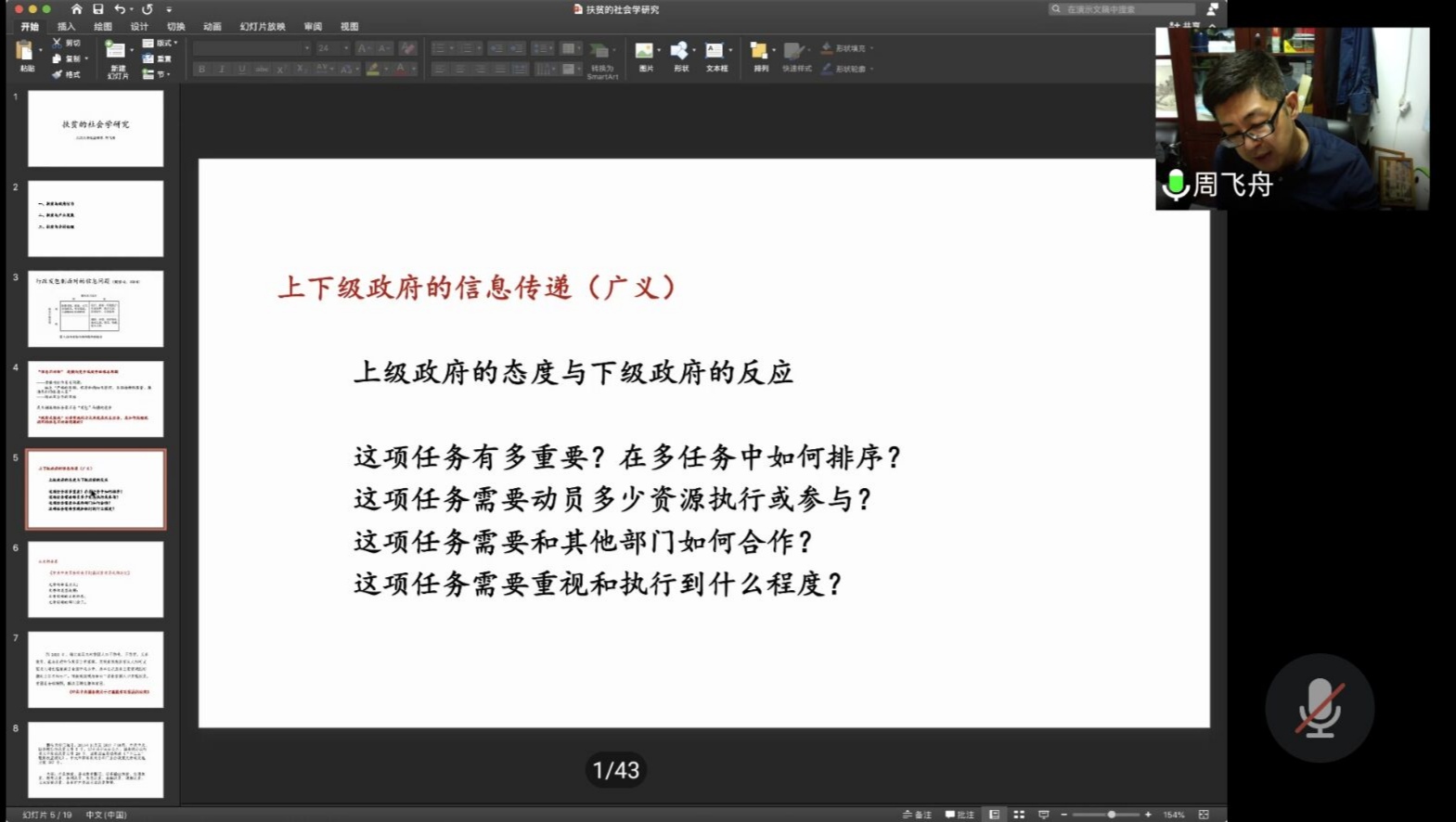 周飞舟教授分别“从扶贫与政府行为、扶贫与产业发展、扶贫与乡村伦理”三个方面展开了深入浅出的讲解。在谈及扶贫与政府行为问题时,周飞舟教授以行政发包制面对的信息问题为引,深入阐释了“脱贫攻坚战”如何以非常规的方式完成了脱贫这一民生任务的问题,探讨了中央政令如何有效到达基层、上下级政府的信息传递等问题。周飞舟教授认为,信息不对称是横向竞争效率低的根本原因,扶贫的难点在于因病因残导致劳动力丧失或伦理问题,同时缺乏资金、技术、劳力等。同时,周教授指出农村劳动力的现状是数量少、质量差、成本高。周教授指出,扶贫过程中产业发展与内生动力与乡村伦理有密切关系,而乡村伦理的作用也是双向而非单向的。最后,周教授聚焦于内生动力与长效机制问题,列举了杜寨村、东岳村的具体实例对“孝”的伦理与扶贫关系和“慈”的伦理与内生动力进行了翔实有力的阐释并提出了独到的见解。