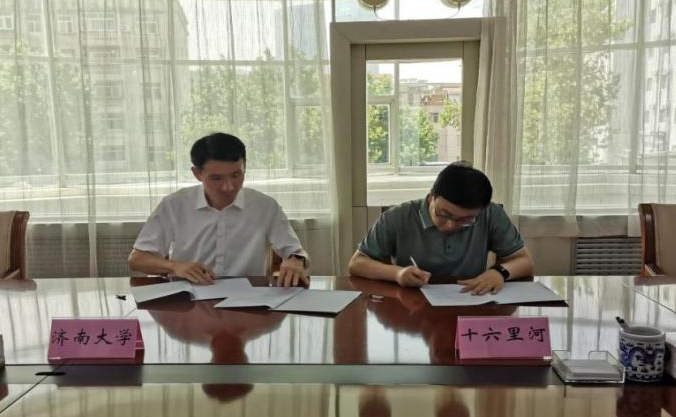 分别与泺源街道办事处、十六里河街道办事处签署了《济南大学本科实践教学基地建设协议》、《济南大学校地合作共建专业战略合作协议》,并为“济南大学实践教学基地”揭牌。