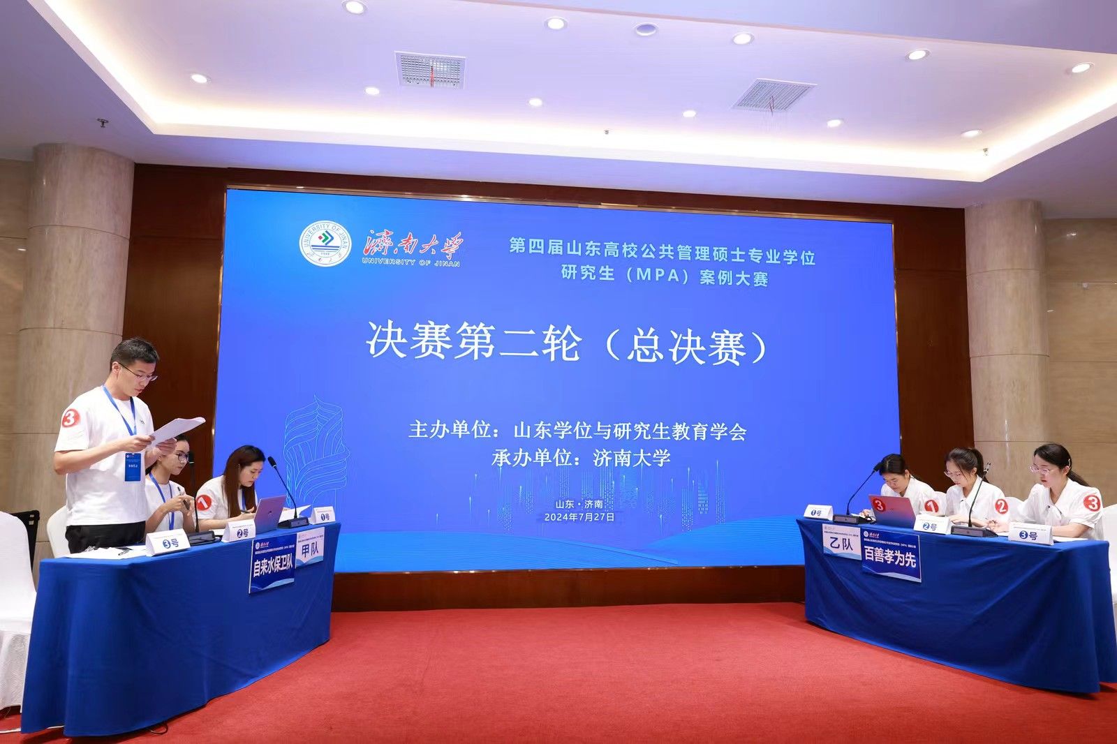 7月27日,由山东学位与研究生教育学会主办、济南大学承办的第四届山东高校公共管理硕士专业学位研究生(MPA)案例大赛决赛在济南举办。山东学位与研究生教育学会会长、山东大学国家治理研究院副院长刘国亮,山东省教育厅学位管理与研究生教育处四级调研员胡康,济南大学党委常委、副校长黄加栋,山东学位与研究生教育学会秘书处、山东师范大学研究生院副院长宋强出席大赛开幕式。学校研究生院、棋牌游戏