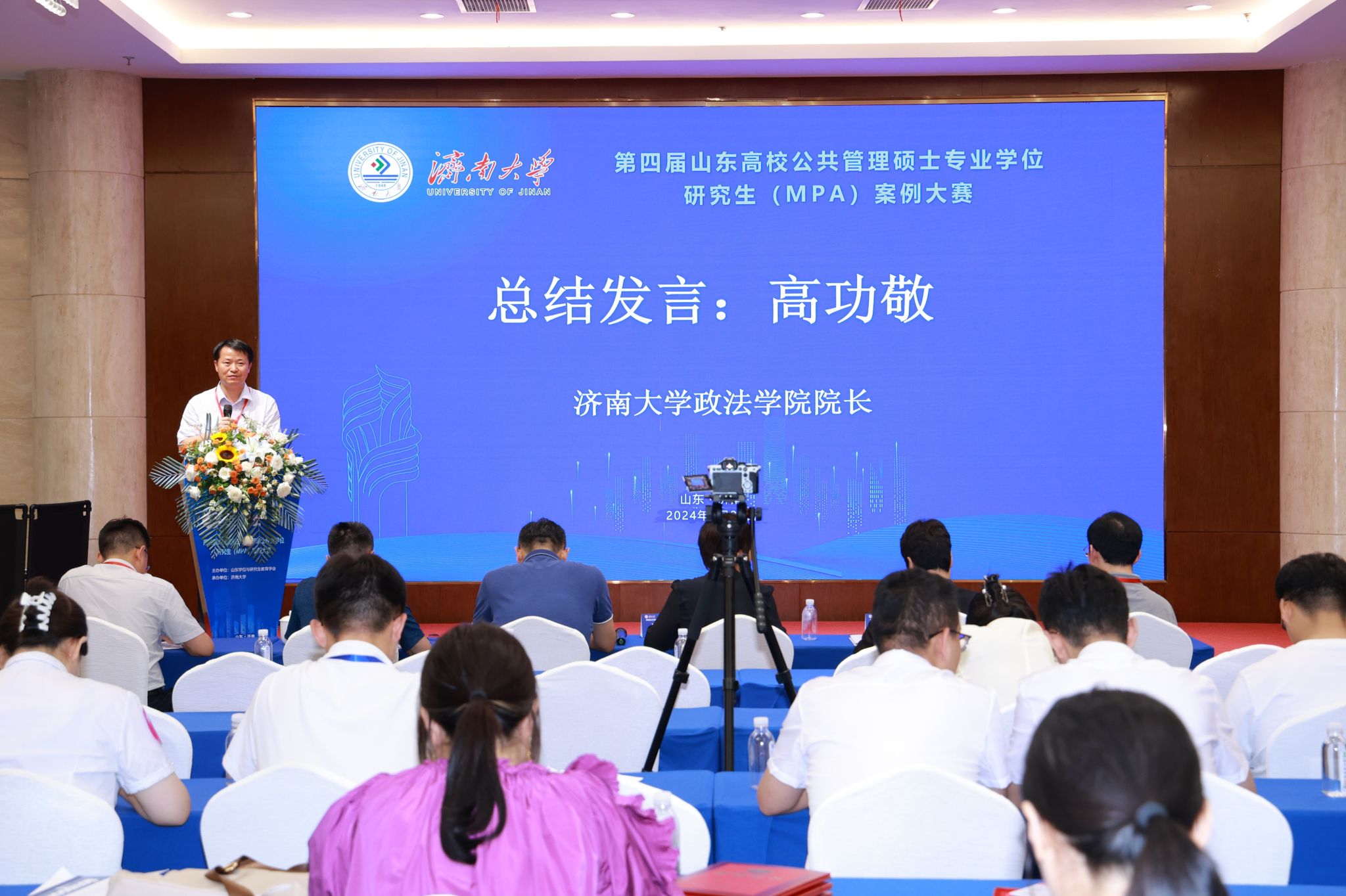 院长高功敬作总结发言并宣读了推荐参加华北地区高校公共管理硕士专业学位研究生(MPA)案例大赛的13支队伍名单。他对获奖队伍和个人表示了热烈祝贺,希望大家能够为推动公共管理专业硕士(MPA)教育事业继续齐心协力、贡献力量,同时对参赛高校、师生和组委会全体工作人员表示感谢,并衷心祝愿与会领导、专家和师生在未来的学习和工作中取得更加优异的成绩和更加辉煌的成就。