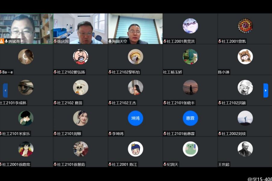 党委书记徐庆国主持,社工专业200余位师生在线参加。