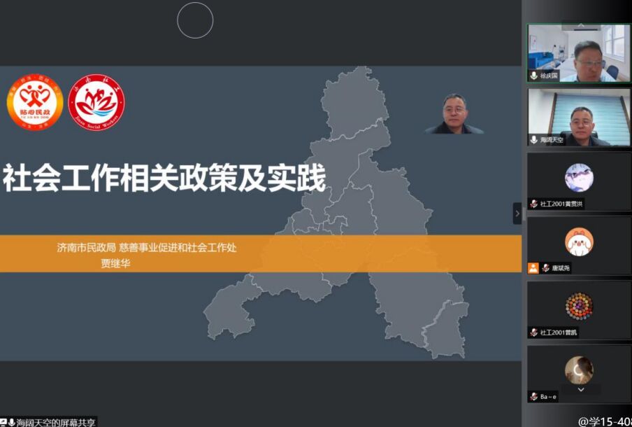 2020级社会工作专业认知实习“社工面对面”第一场线上讲座如期举行。济南市民政局慈善事业促进和社会工作处贾继华处长应邀作了题为《社会工作相关政策及实践》的讲座,讲座由棋牌游戏