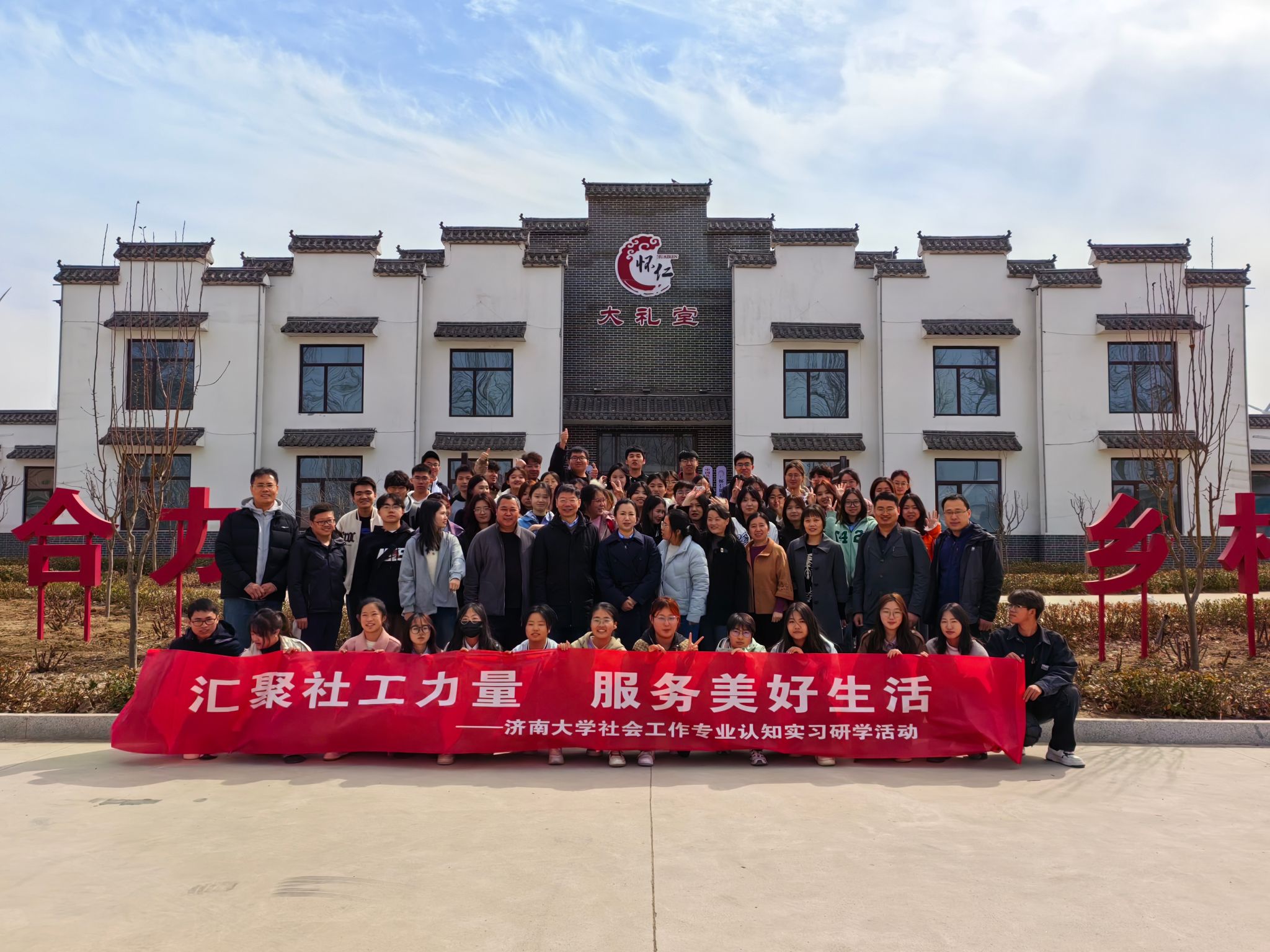 党委书记李春慧带队赴济南市商河县怀仁镇开展乡村振兴研学活动,社会学系党支部、系部分教师及社会工作专业2023级全体同学参加。怀仁镇党委副书记、镇长崔维波,镇党委副书记王德利,镇党委委员、政法委员、副镇长高传利,镇党委委员、人武部长孙立军,镇党委委员、宣传委员杨小君,副镇长信师锐等陪同调研。