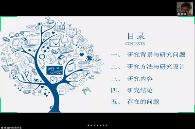 梁丽霞院长首先介绍参加预答辩的校内外专家,并对校外专家表示欢迎和感谢。随后各位同学结合自己的毕业论文,围绕背景与研究问题、研究方法与研究设计、研究内容、研究结论和存在的问题进行PPT汇报。评议专家进行了细致点评,从选题、理论分析和规范性等方面提出意见建议。抗疫的特殊时期,校内外专家、预答辩工作团队和即将毕业的硕士研究生通力合作,进行了一场同质等效的“云答辩”。