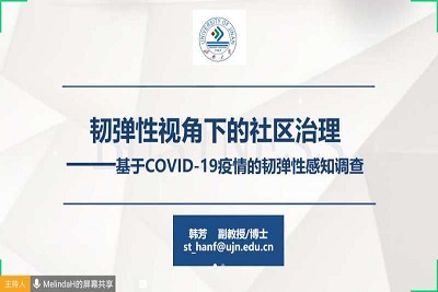 副教授韩芳老师主讲,讲座题目为《韧弹性视角下的社区治理——基于COVID-19疫情的韧弹性感知调查》。讲座由棋牌游戏