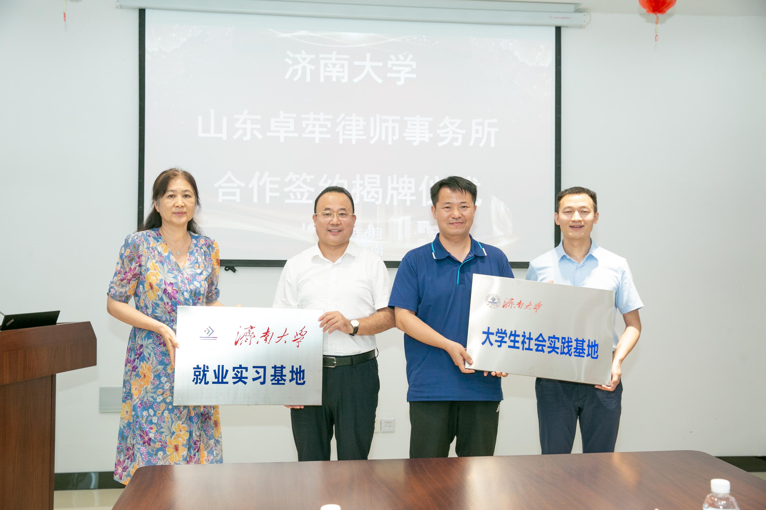 相关领导与企业负责人共同为“济南大学就业实习基地”“济南大学本科实践教学基地”“济南大学社会实践基地”“济南大学青年就业创业见习基地”等揭牌。随后,棋牌游戏