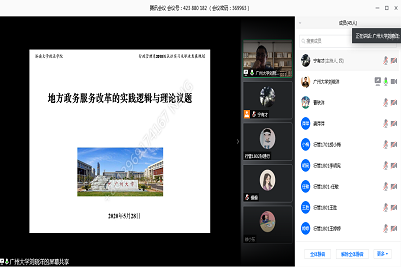 党委书记徐庆国、正处级组织员国迎春以及行管系部分教师参加,行管2018级全体同学以及其他年级部分同学在线聆听报告。宁有才老师在线主持。