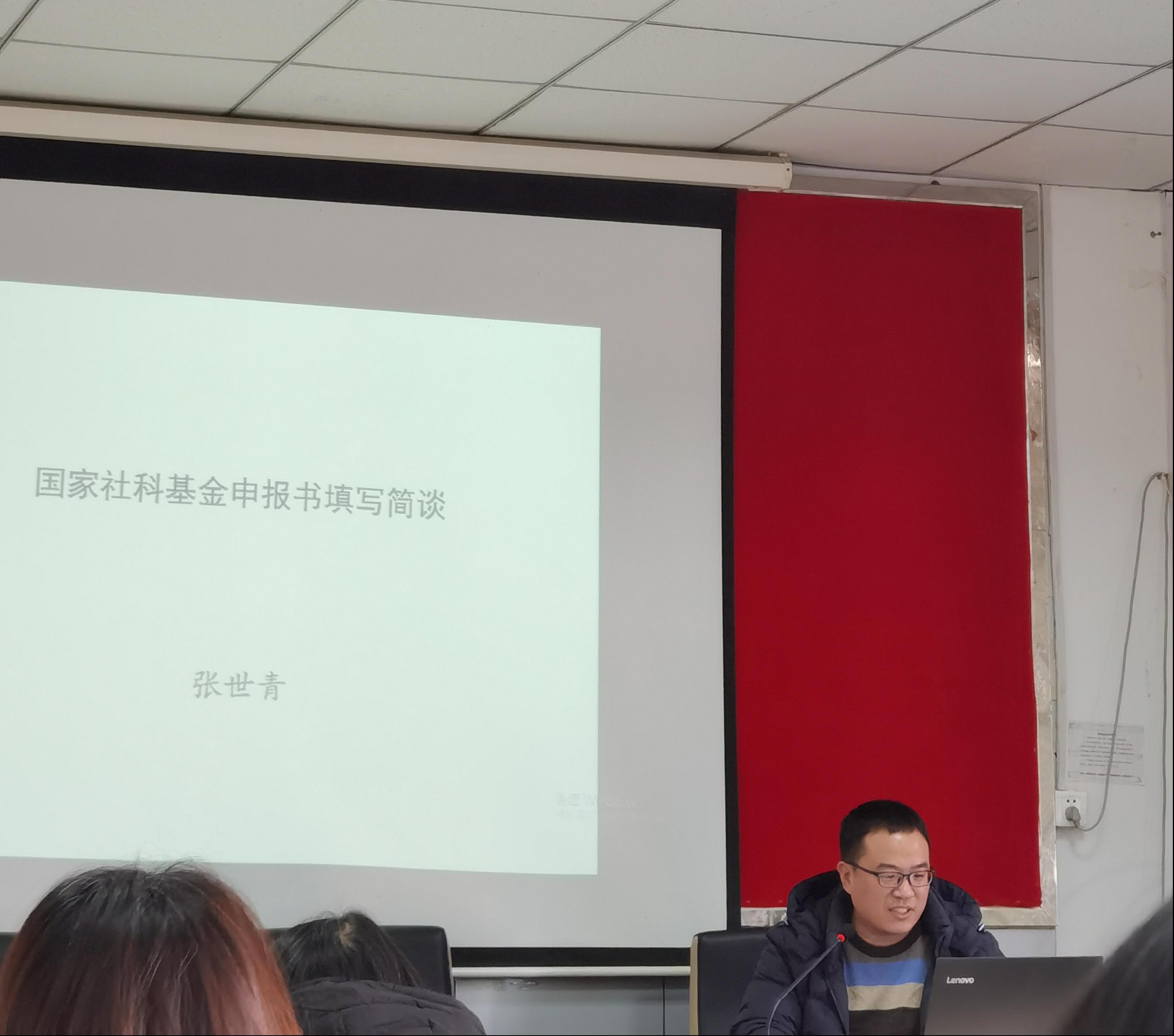 宁有才老师结合自身申请国家社科基金的经历,分享自己在申请国家社科基金项目过程中的心得体会。宁老师尤为强调在准备过程中要注重对历年已中选题的分析,要多分析他人选题的长处和特点;同时要不断完善自己的论证书,不断的修改,论证过程是一个坚持和克服困难的过程。张世青老师从课题的选题、研究方法、研究思路、代表性成果选择等几个方面向大家介绍自己申请的经验。张老师认为课题申请选题最重要,可以从问题对策向前推导,让题目更加精准;同时选题要视野开拓、要与国家大政方针、与社会需求等相结合。