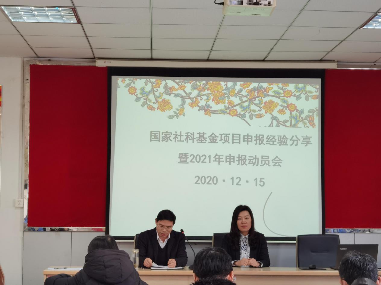 在3J210召开国家社科基金项目申报经验分享暨2021年申报动员会。行管系宁主任有才老师和社会系张世青老师向大家分享了各自申请国家社科基金的历程和国家社科选题、论证的注意事项。会议由副院长李慧明主持,社科处副处长任慧颖应邀到会指导。