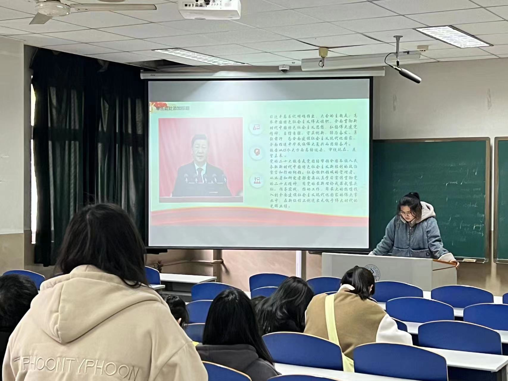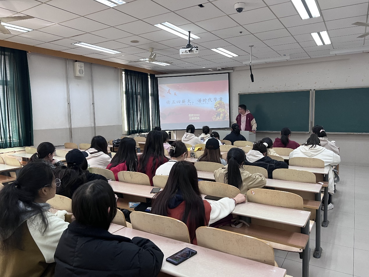在此次主题团日活动中,各班级团支书结合党的二十大报告,积极引导广大团员青年学习党的二十大报告精神,激励同学们立志做有理想、有担当、能吃苦、肯奋斗的新时代好青年。同时,各团支部深入学习研讨习近平总书记在纪念五四运动100周年大会上的讲话、习近平总书记关于“民族复兴征程中激扬青春”指引新时代青年工作的重要思想等内容。习近平总书记在纪念五四运动100周年大会上的重要讲话精神意蕴深远,流露出对广大青年的殷切期盼,鼓励新时代青年人用青春的能动力和创造力激荡起民族复兴的澎湃春潮。为此,同学们纷纷表示,我们生逢其时,应传承五四薪火,展现青春风采,在全面建设社会主义现代化国家中行稳致远。
