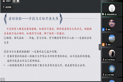 本次分享会伊始,韩钰老师介绍了我系2018级社会工作专业学生考研情况,目前已有23位同学获得研究生录取资格,韩老师对18级考研同学的刻苦努力表示肯定。接下来,18级黄琼、李思远、王丹、王翠、李雅杰和胡凯悦六位同学作为榜样代表进行了考研经验分享。这六位同学分别被中山大学、南开大学、济南大学、华中科技大学、华东理工大学和西安交通大学录取,她们分别从考研计划制定、专业课和公共课复习、应试技巧、情绪和时间管理等方面,分享了自己的考研历程和心得体会。最后,邱莉老师对分享会进行了总结,提醒2019级同学要尽早锚定目标,学会利用专业优势链接资源,化解考研路上的焦虑情绪,避免择校反复不定和后期因焦虑而影响复习进程。韩钰老师对分享会进行了补充,强调了实习对于考研的重要意义,期待和鼓励同学们在实习和赛事中锻炼和提升专业能力、创新能力。