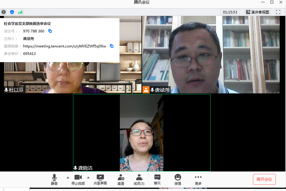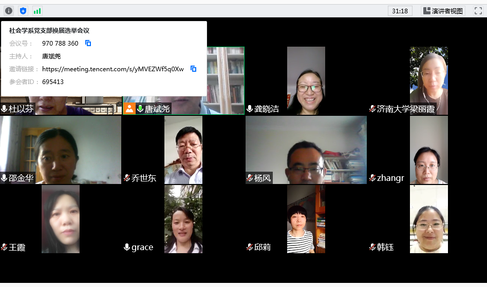 2020年6月12日下午,通过网络腾讯会议,社会学系党支部召开了一次别具生面的网上换届选举会议。该次会议由上一届党支部书记唐斌尧主持,社会学系党员教师参加,棋牌游戏