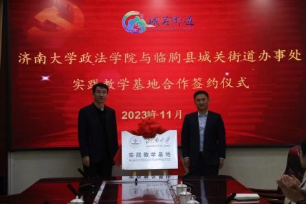 可以为城关街道高质量发展提供智力支持,街道可以为学校人才培养和成果转化提供新平台。随后,分别签订了济南大学实践教学基地、学生社会实践基地和就业实习基地。