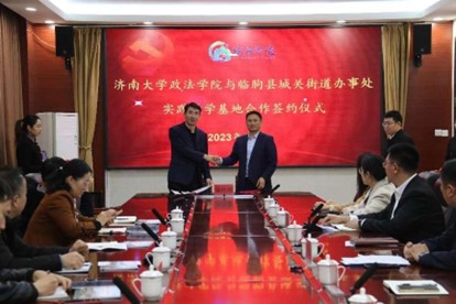 李涛副书记带队,行政管理系宁有才、韩慧、社会学系高朋、人力资源与社会保障系孙红晔等参加此次活动。临朐县干部教育中心主任王成建、城关街道办事处主任陈敬等领导出席签约仪式。