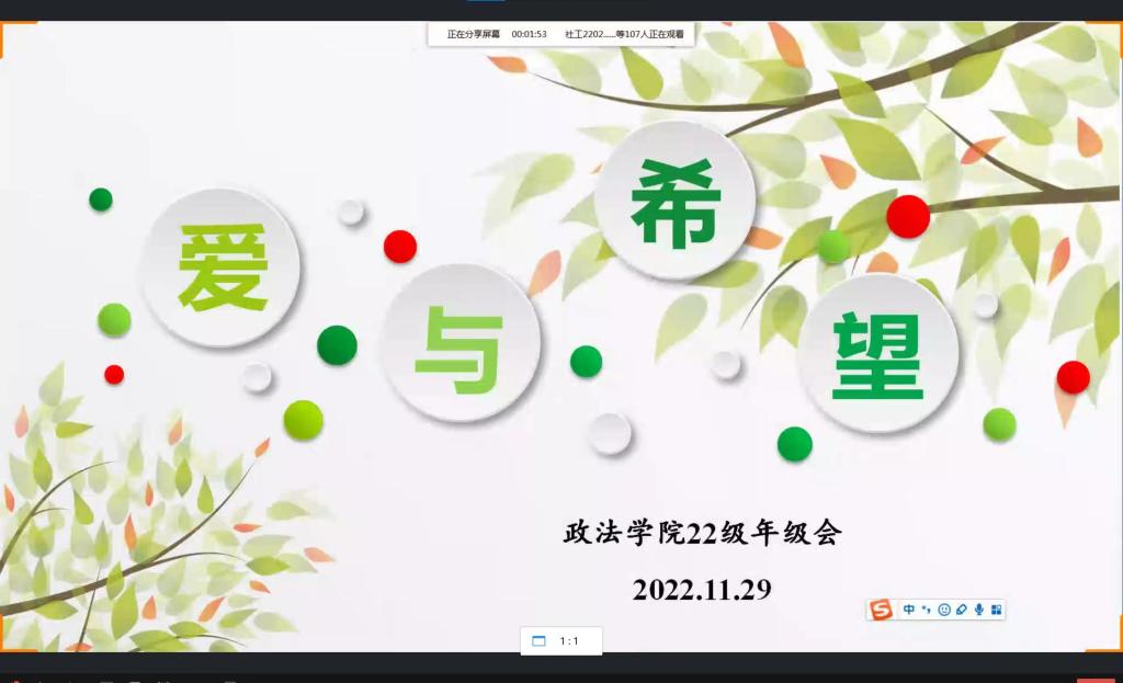 为增强学生疫情防护意识,营造良好学习生活氛围。11月29日,本科22级召开“爱与希望”线上主题年级会。辅导员刘晓娟主持会议,22级全体学生参加。