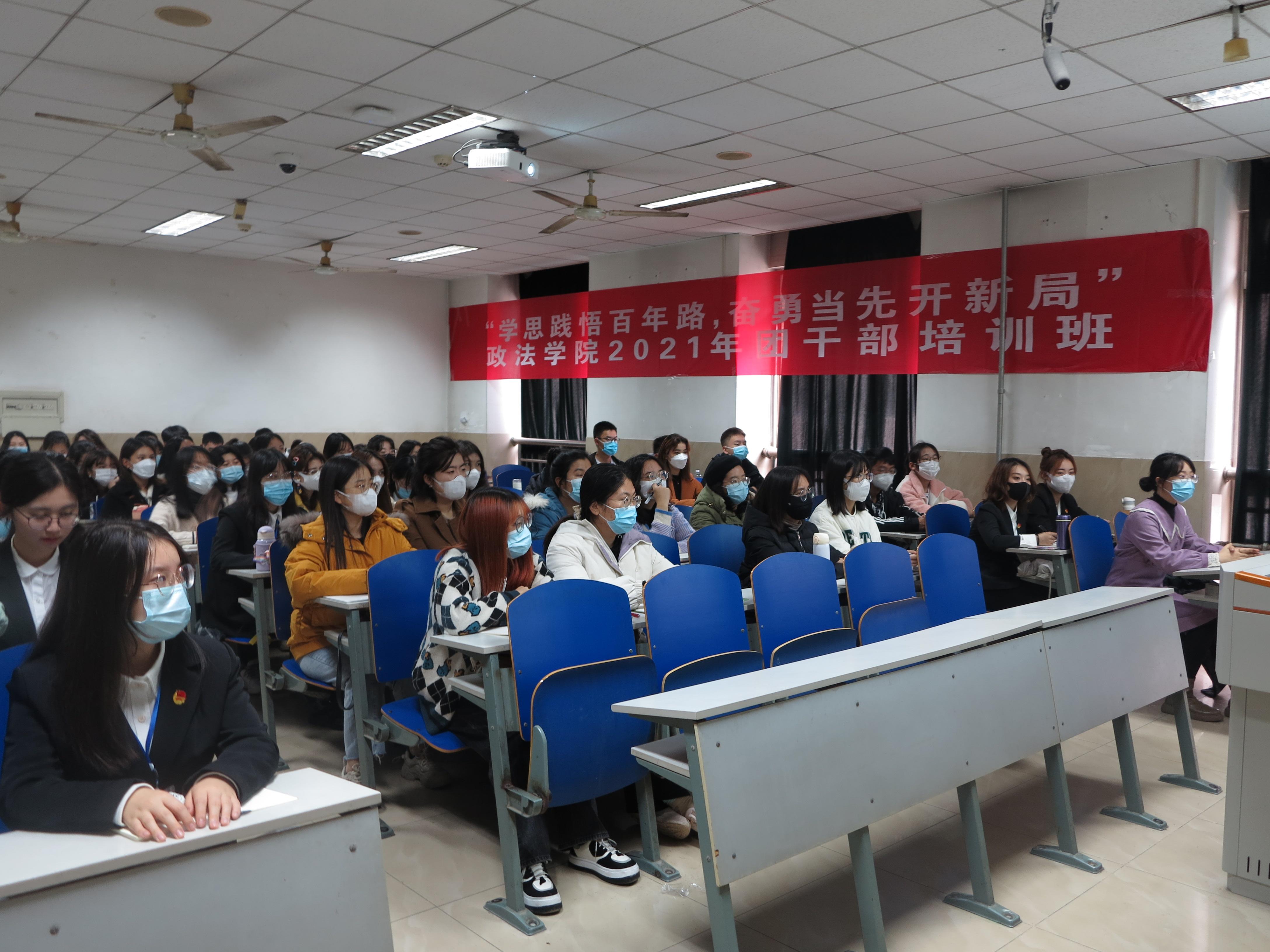 在一教212教室举行“学思践悟百年路,奋勇当先开新局”2021年新生团干部培训班。