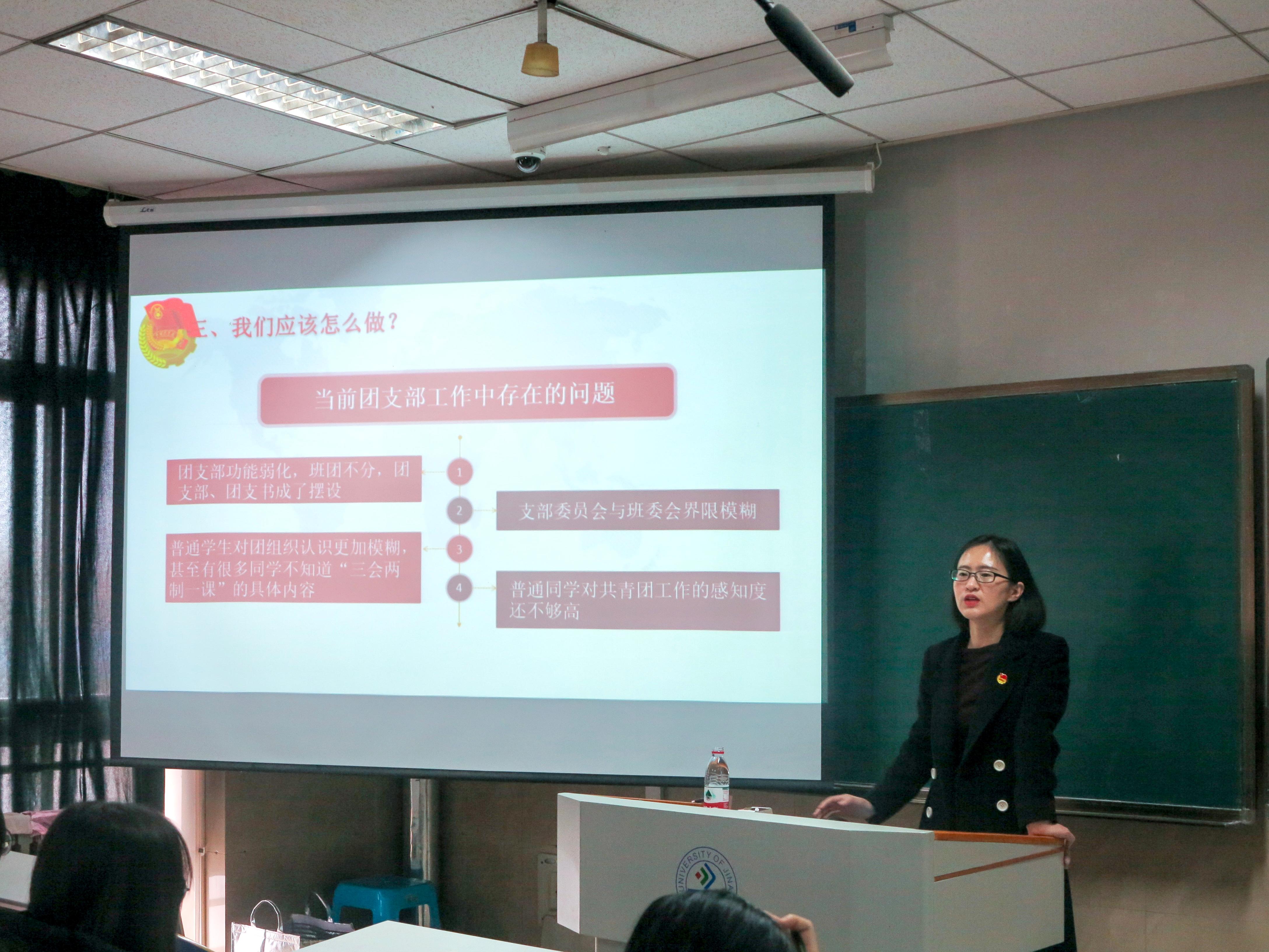 团委基本情况”“团干部的职责使命”等方面进行详细讲解,她指出团干部要牢固树立永远跟党走的理想信念,注重加强理论学习,不断提高理论素养,以团章和团支部工作条例为遵循,以“三会两制一课”和“主题团日”为抓手,不断提高团支部建设质量。