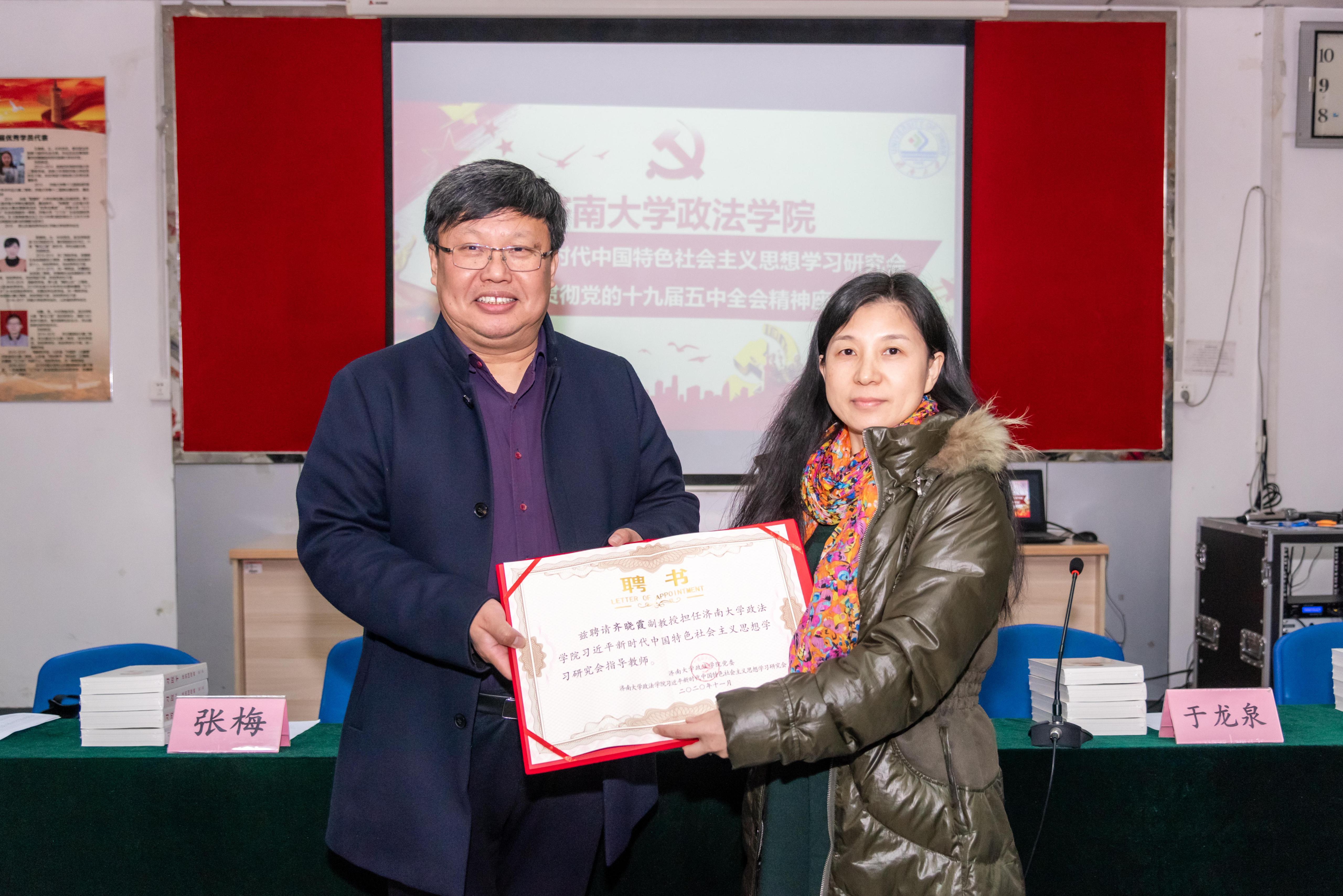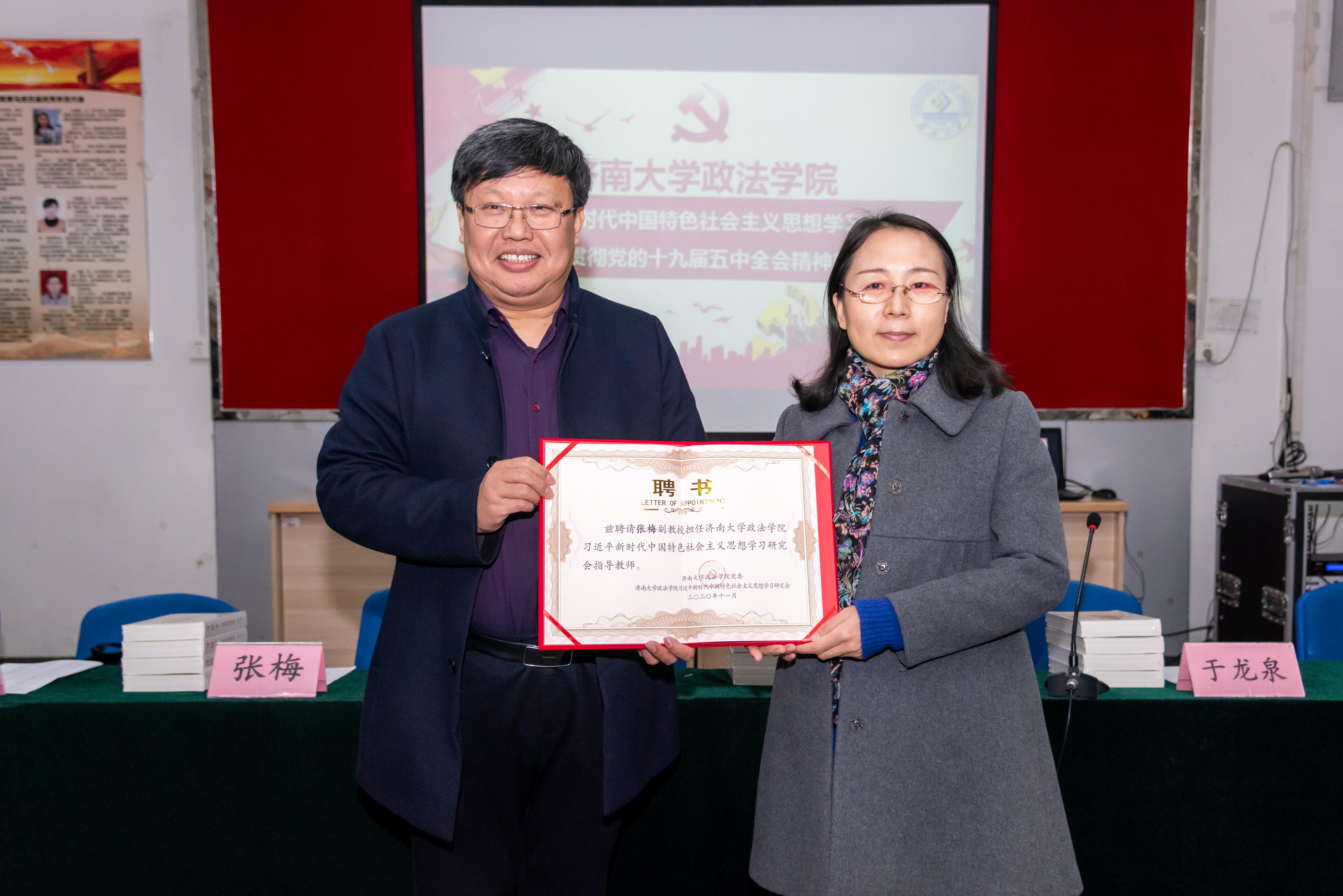 开展思想政治教育的重要载体,通过配齐配强指导教师,为学习研究会今后发展提供强大智力支持和保障。随后,他从为什么学、学什么、怎么学三个方面,希望全体学员站在历史维度、实践维度和个人成长维度充分认识加强理论学习的重要性,坚持学原文、读原著、悟原理,把学习宣传贯彻党的十九届五中全会精神作为当前和今后一个时期的重要政治任务,做到理论学习与实践学习、专业学习相结合,推动学习贯彻习近平新时代中国特色社会主义思想往深里走、往心里走、往实里走,做到真学、真懂、真信、真用,争做担当民族复兴大任的时代新人。