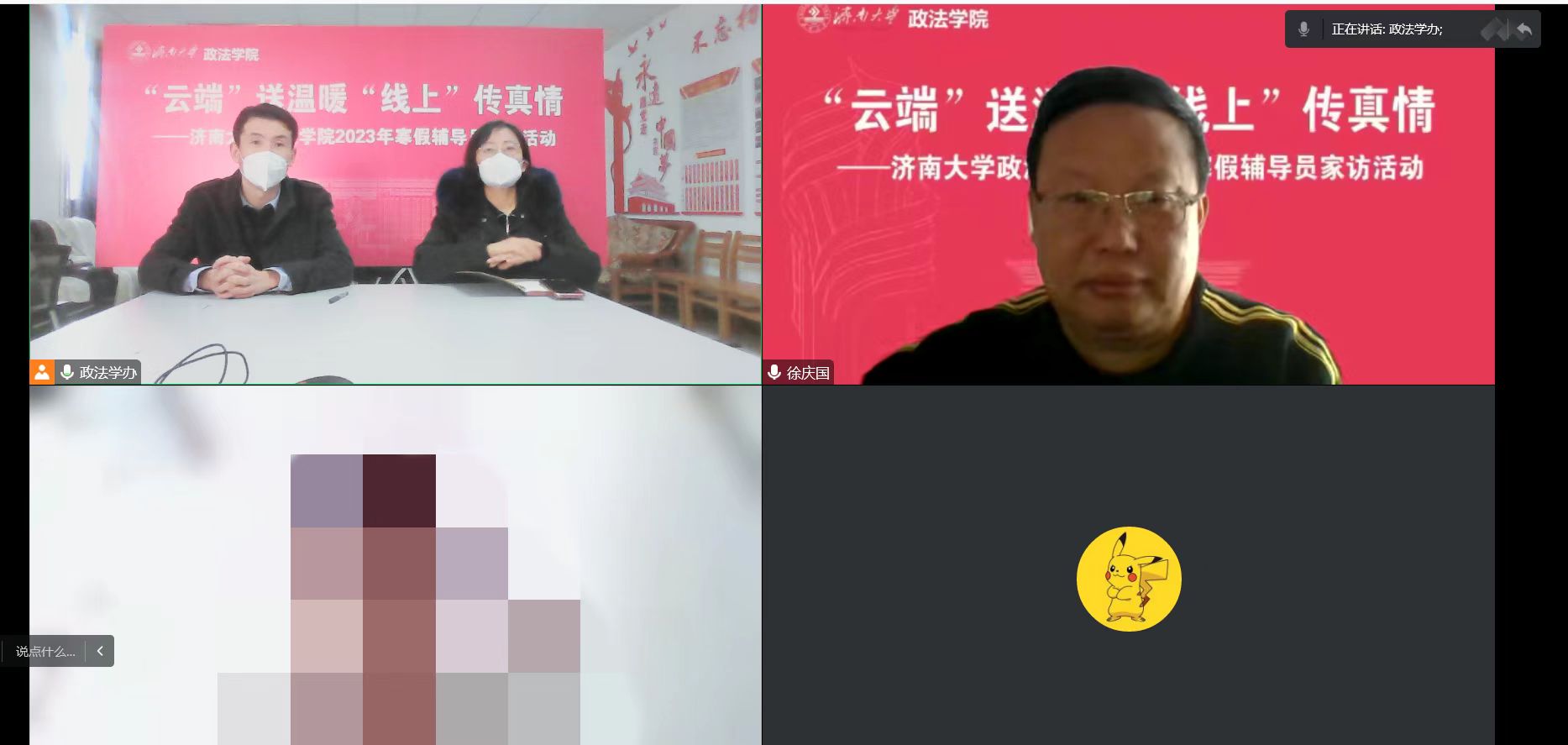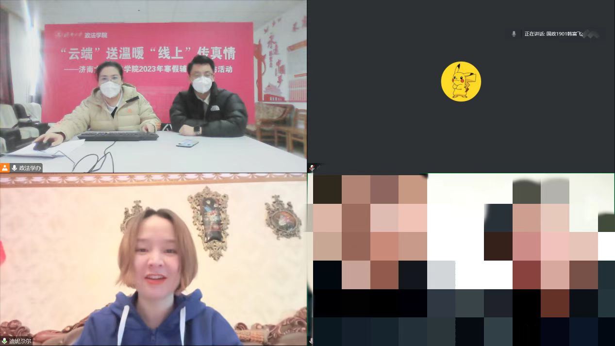 少数民族学生多、有受疫情影响无法返校的情况,徐庆国书记、李涛副书记及预科班班主任艾尼瓦尔老师一起线上走访慰问2名预科班学生,向学生送上新春祝福及棋牌游戏