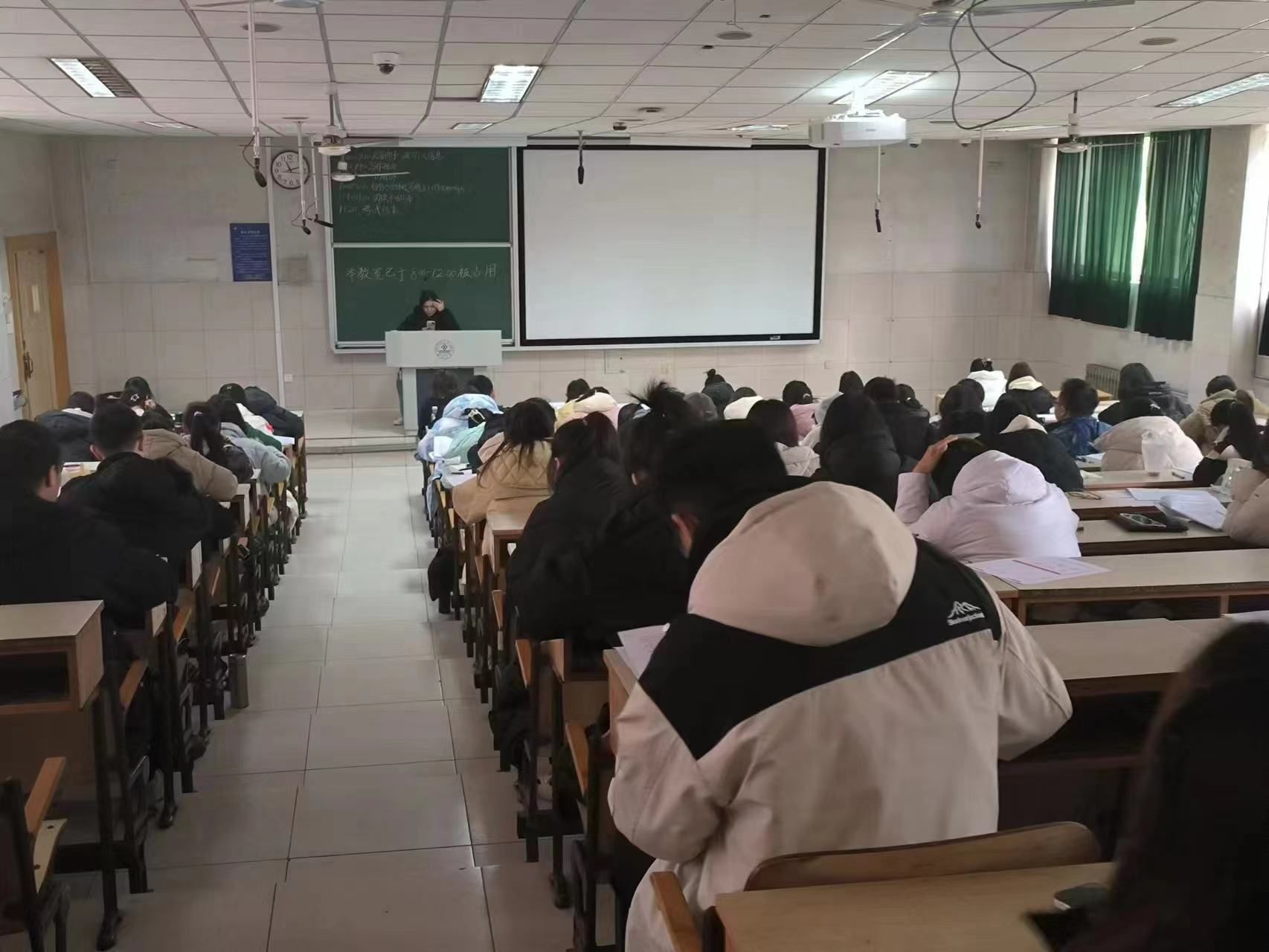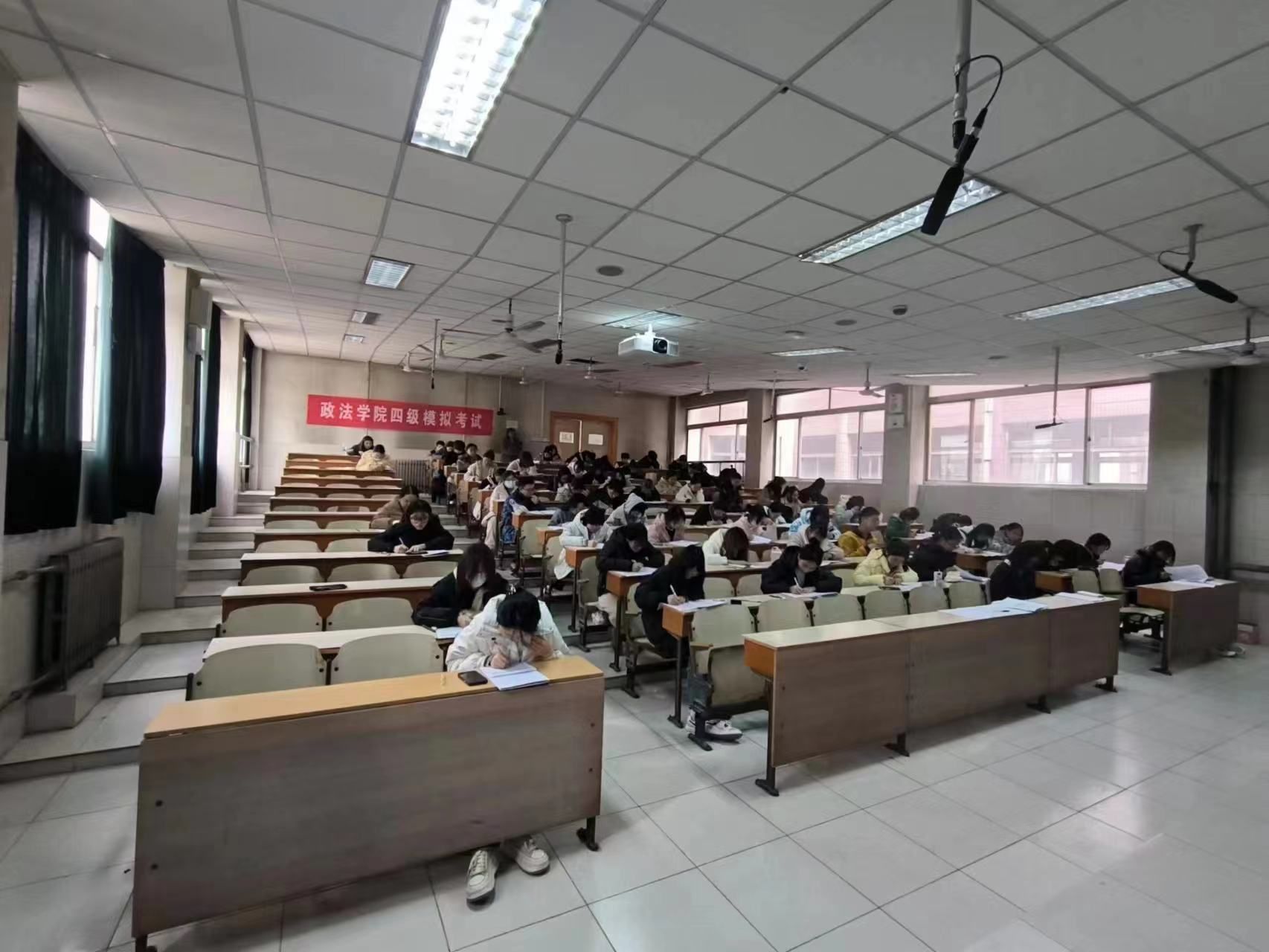 此次模拟考试严格按照全国大学英语四级考试流程进行,试卷题目来源权威并经专业教师认真审核,相关工作人员尽职尽责,认真筹备,旨在最大程度为学生还原真实考试现场。模拟考试过程中,各考场监考人员细致讲解注意事项,严格下发考试指令,同学们全神贯注,严谨作答。整场考试公正规范,氛围良好,井然有序。