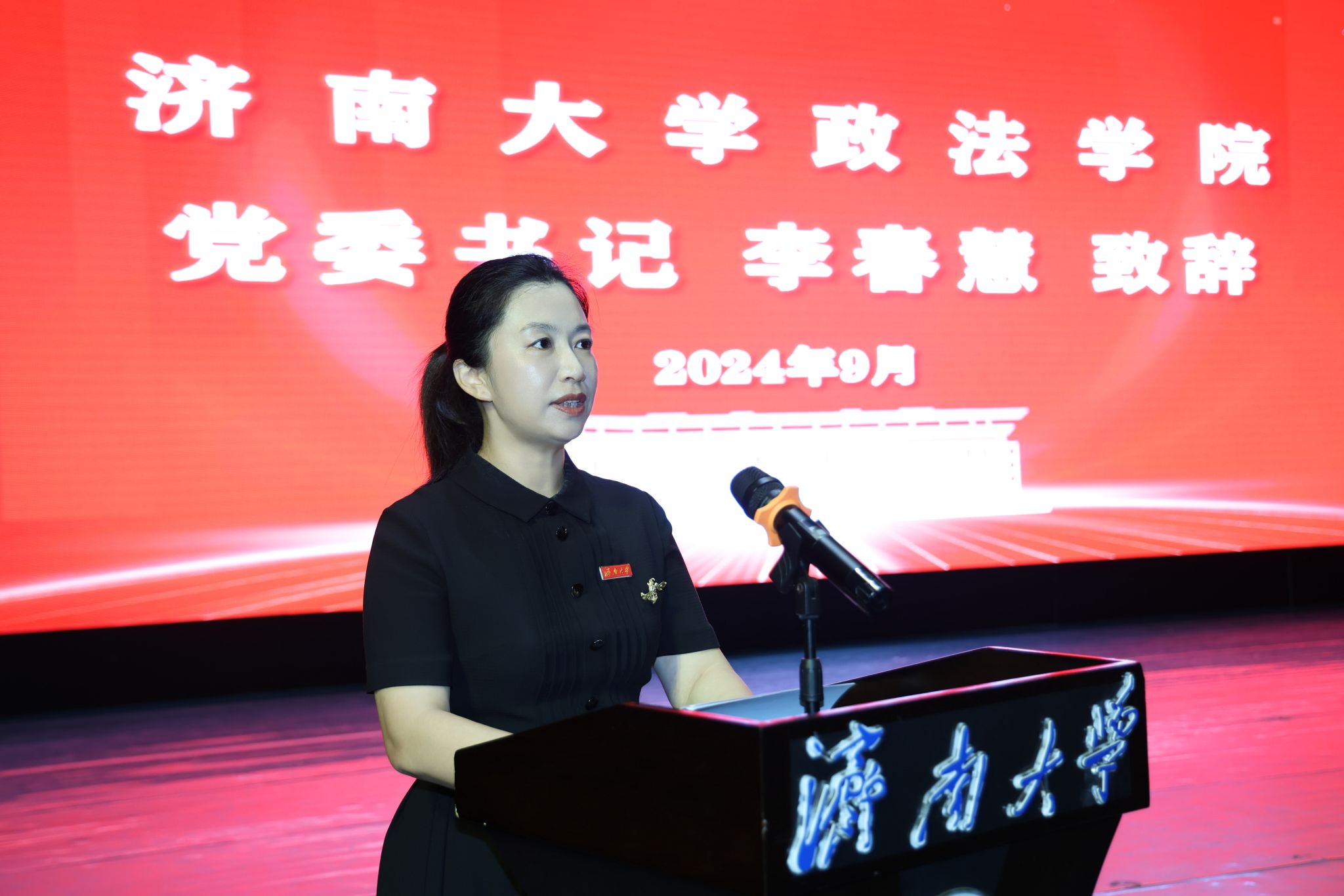 党委书记李春慧对2024级新生的到来表示热烈的欢迎和诚挚的祝贺。她强调,作为新时代的青年,同学们的成长和发挥作用的时期恰与中华民族伟大复兴的历史进程相吻合,同学们要自觉、勇敢肩负起历史重任,做担当时代大任的青年。她寄语新生,要励志笃行,做敢于追梦的新时代青年;要勤学实干,做甘于吃苦的新时代青年;要开拓创新,做勇于争先的新时代青年;要正心明道,做勤于修身的新时代青年。