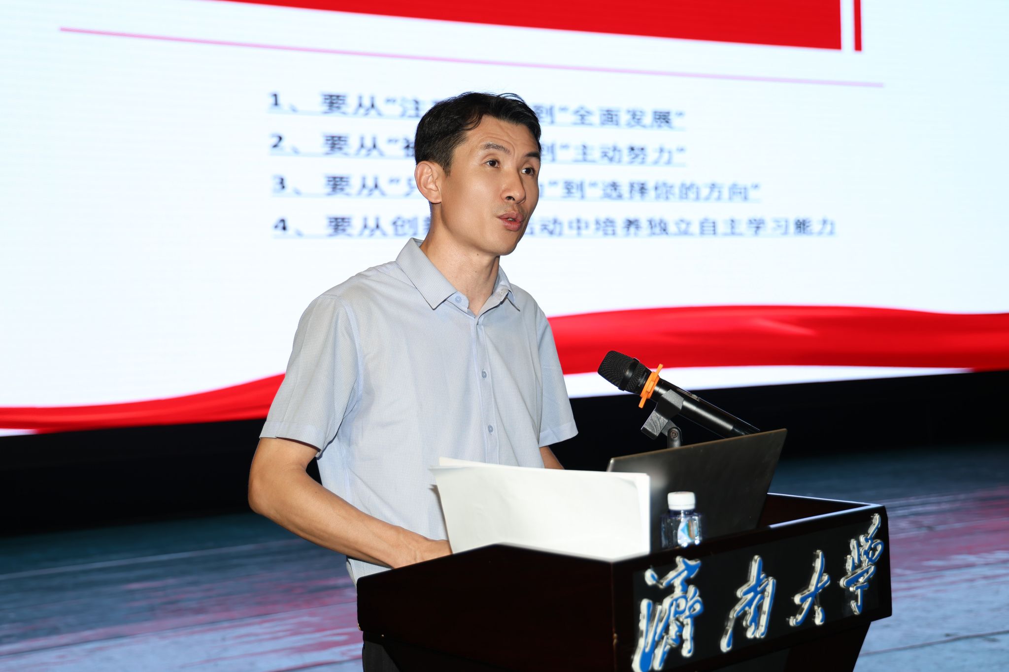 党委副书记、副院长李涛以“进入大学校园之后的角色转变”为主题,希望大家从学习生活、个人身份、思维方式三个方面及时转变角色,鼓励大家在大学生活新征程中主动转变学习方式、培养自主学习能力、提高自控力、做好生涯规划,顺利开启美好大学生涯。