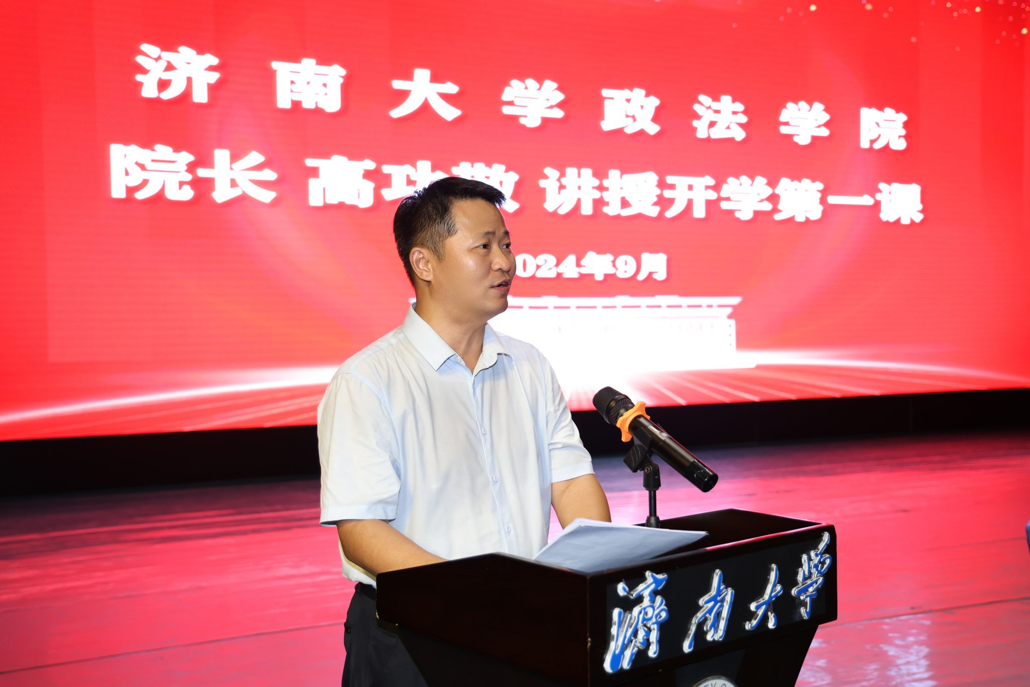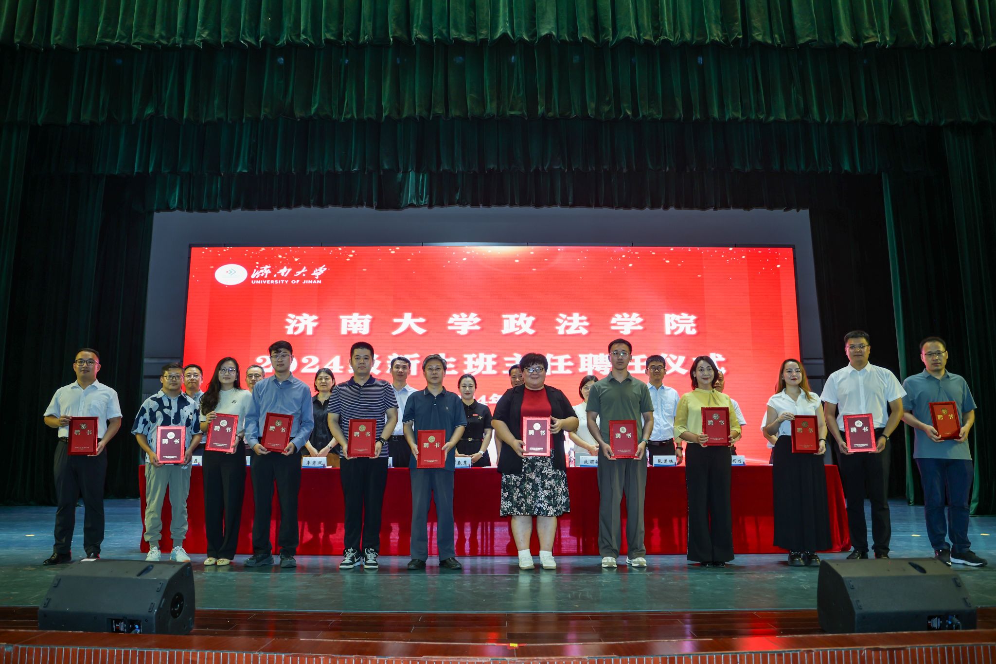 领导为程方等12位新生班主任老师颁发聘书。班主任代表、2024级本科生辅导员沈正浩勉励全体新生保持初心,志存高远,树立远大理想;坚守恒心,深耕专业,做到知行合一;富有爱心,热爱自己,懂得尊重感恩。2021级在校生代表、挑战杯国赛一等奖获得者张梓彤结合自身学习经历激励新生坚定信念,奋发有为,厚植情怀,立志做立德修身、勤勉踏实的济大政法人。本科生新生代表法学专业王烁焱、研究生新生代表社会学专业殷国莉表达了对未来学习生活的憧憬和展望,并号召全体新生秉承济大校训,踔厉奋发不负青春美好,砥砺前行不负时代所托。