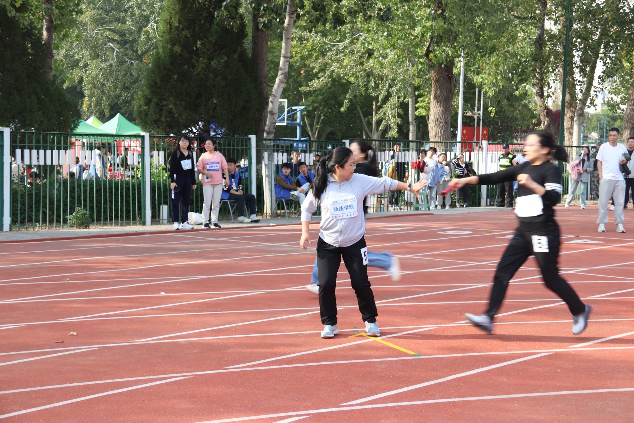 青年教师曹玉梅、韩钰、刘晓娟、王霞萍,在女子4×100米比赛中取得优异的成绩。