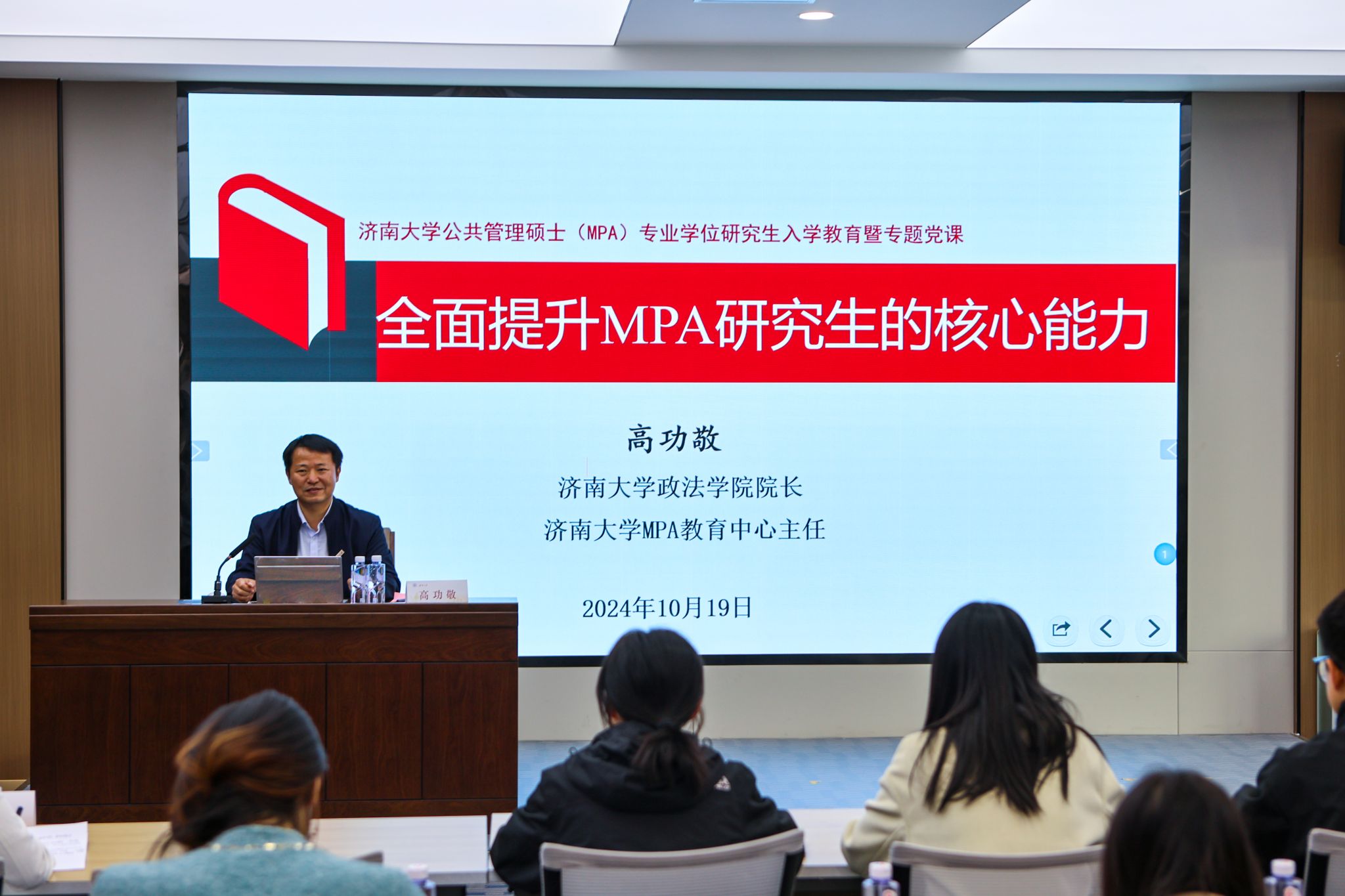 的学科特色和科研成果,以及近年来MPA人才培养取得的成绩。她强调济南大学MPA以培养具备创新意识和能力的复合应用型公共管理人才为培养目标,并对同学们提出三点期望:树立理想信念,明确人生方向;塑造学术素养,提升专业水平;培养合作精神,利用校友资源共赢。