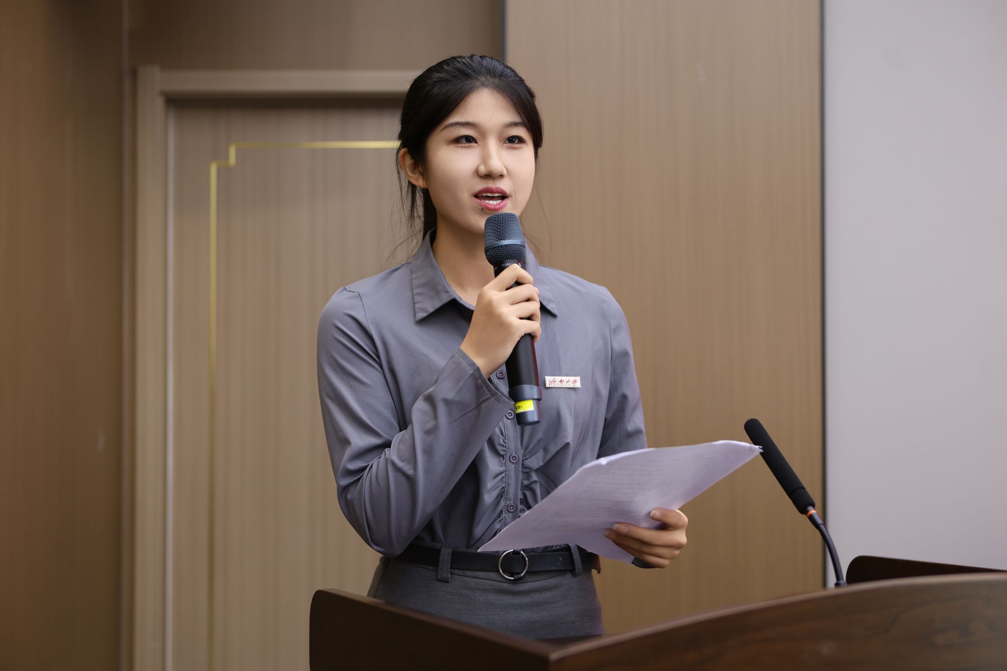 2024级MPA研究生李静雯作为新生代表发言,心怀对未来学习生活的憧憬和展望,她表示一定会珍惜在校学习时光,坚定信念,勤勉求知,在济南大学MPA的平台上不断追求卓越、超越自我,为实现个人梦想和社会进步贡献的力量。