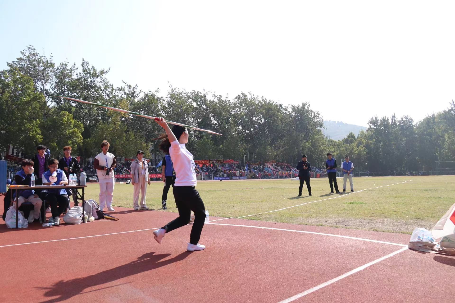 金秋十月,丹桂飘香,迎着明媚的阳光,伴着柔和的秋风,济南大学运动会正在如火如荼地进行着,其中,女子教工青年组标枪决赛进行的格外激烈,引人注目。