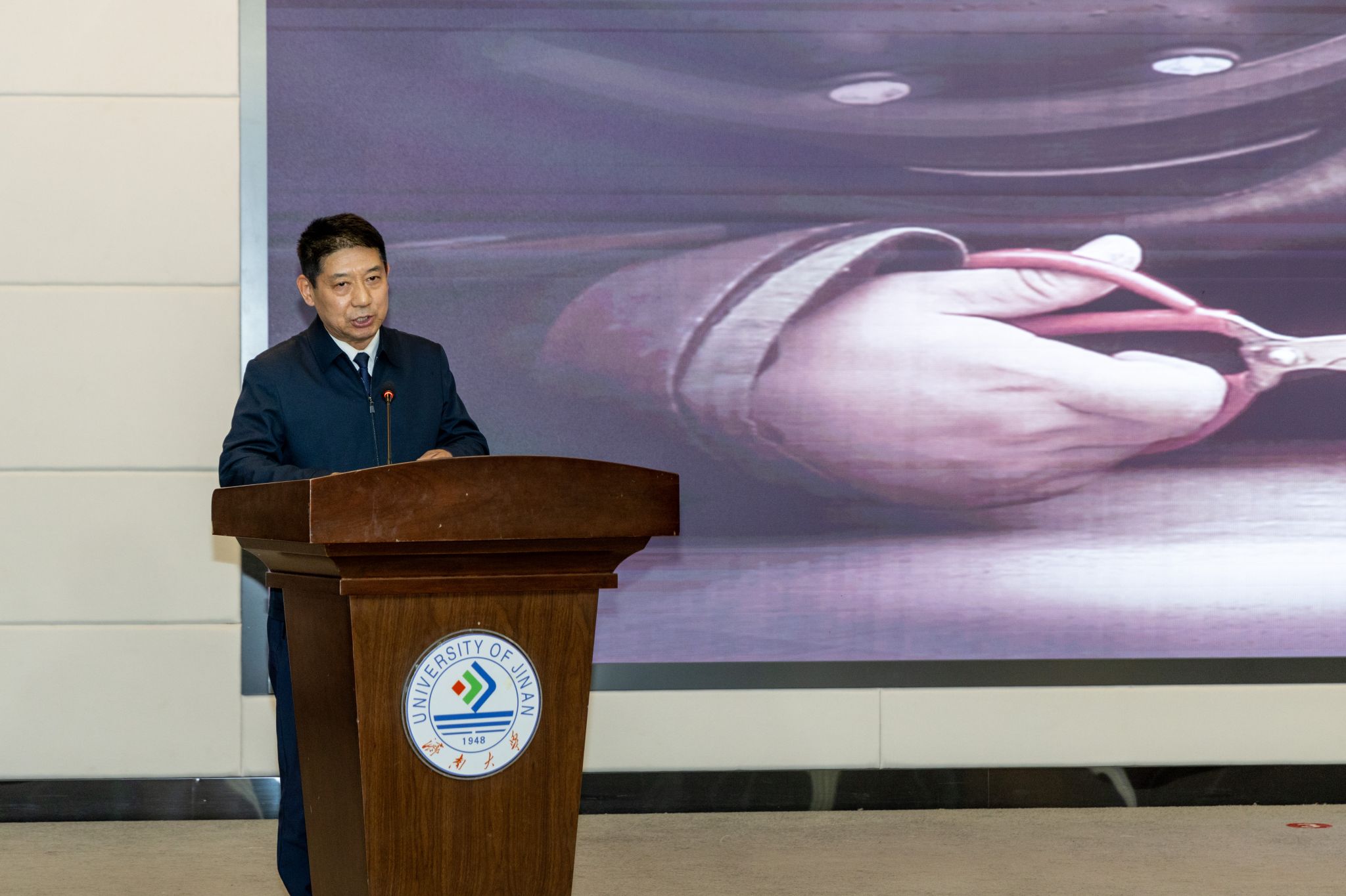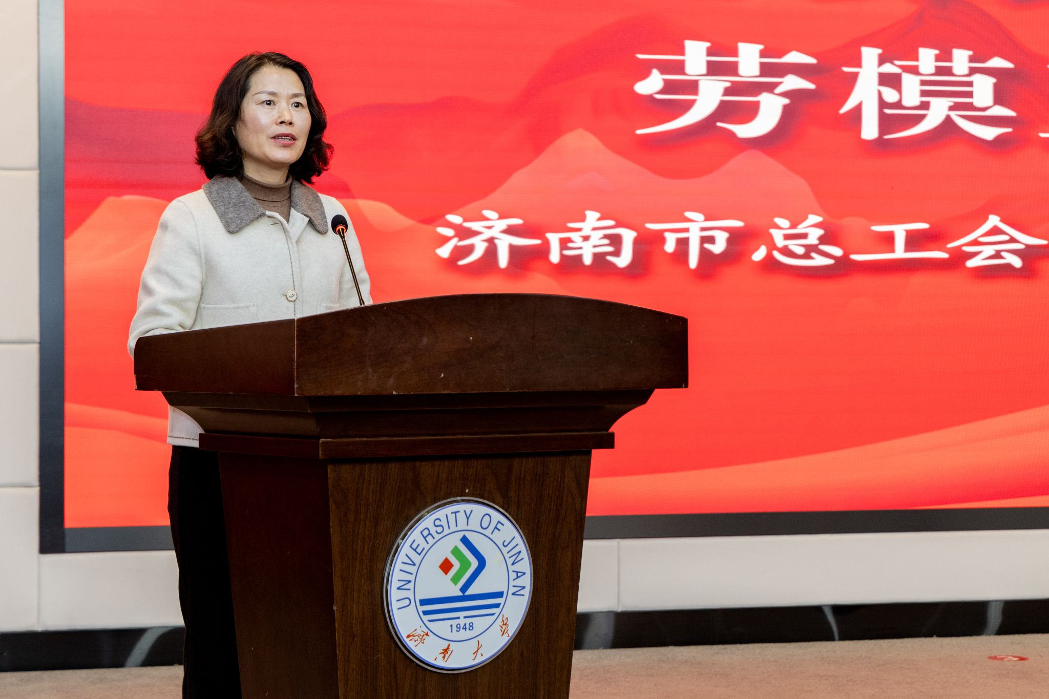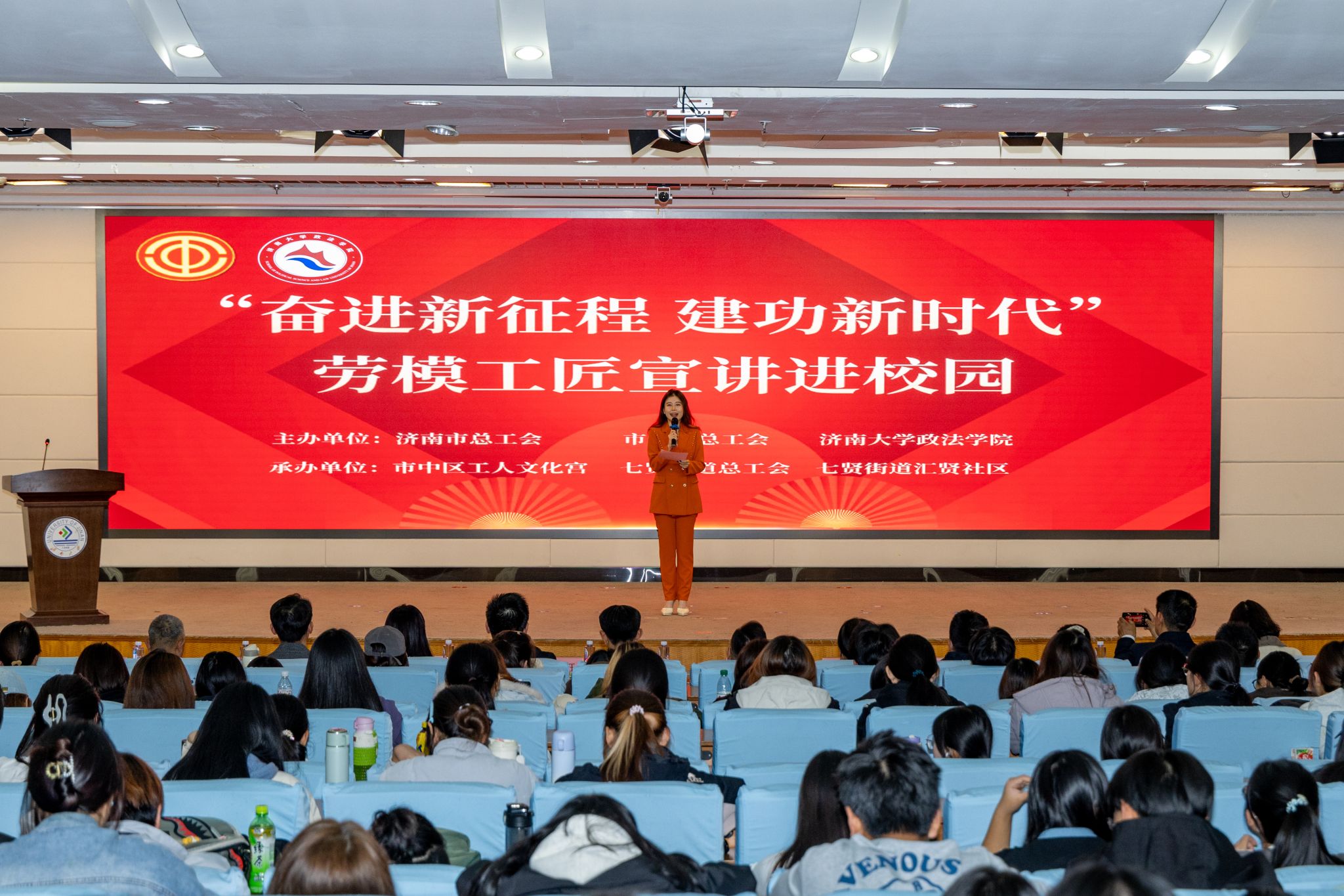 的基本情况。他表示,劳模工匠宣讲活动是济南大学与济南市校地融合赋能全环境立德树人的生动实践,学校高度重视传承弘扬劳模精神、劳动精神、工匠精神,坚持营造学习劳模、关爱劳模、争当劳模的良好氛围。他要求同学们在聆听中感悟精神伟力、汲取榜样力量、树立劳动观念,刻苦钻研、砥砺奋进,做伟大事业的建设者、文明风尚的倡导者、敢于追梦的奋斗者。