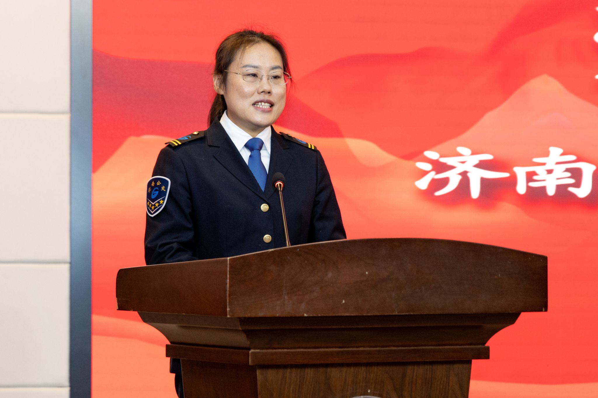 天桥公安分局宣传科副科长、济南市五一劳动奖章获得者刘小源讲述自己同事舍生忘我的感人事迹,宣传讲解了远离毒品、维护网络安全、预防网络电信诈骗等方面的法律知识,引导师生了解遵法、学法、守法、用法、护法的重要意义。